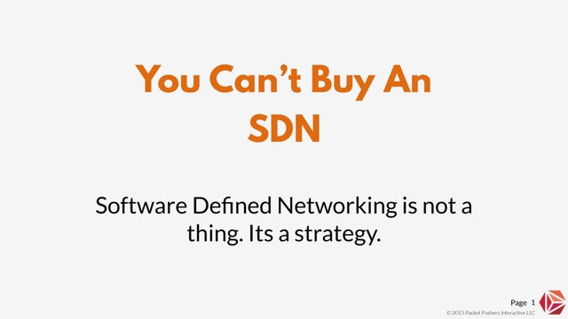In this presentation, Greg will examine SDN from the perspective of the Network or IT Architect who works at the customer site. How could SDN change your strategy ? Why do you want it to ? What is the business value ? And offering advice on how can you get started today.