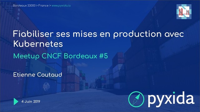 Bordeaux 33000 > France > www.pyxida.io Take Away ! • Plein de façons de gérer ses déploiements sur k8s • Votre méthode de MEP reflète votre organisation • Sans test, le blue/green ne sert à rien • Sans métrique, oubliez le canary • Les services mesh apportent des features … • mais aussi de la complexité • La meilleure des MEP est celle que vous avez décidée