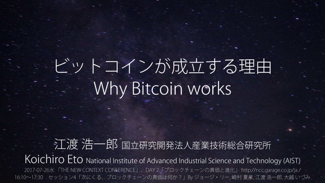 2017-07-26水 「THE NEW CONTEXT CONFERENCE」、DAY 2「ブロックチェーンの真価と進化」 http://ncc.garage.co.jp/ja/