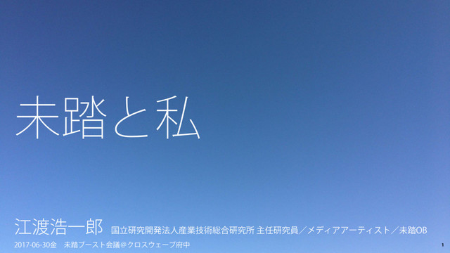 ະ౿ʹࢥ͏͜ͱ ࣮࢈૯ݚʹೖॴ͢Δ͖͔͚ͬͰ͋Δ Ү༤ݚڀࣨͰത࢜߸Λऔಘͨ͠ʢઌੜͱͷͭͳ͕Γʣ ͋Δҙຯɺਓੜͷ΄ͱΜͲ͕ະ౿Ͱܾ·͍ͬͯΔ ࣗʹͱͬͯͷେ͖ͳؠͳʹ͔ʁ ݚڀऀͰͳ͔ͬͨɻΞʔςΟετͩͬͨɻͦͯ͠Ξʔτͱͳʹʁ ίϝϯτͰ͖ͦ͏ͳྖҬ ܳज़ɾσβΠϯܥʢઐՈͰ͢ʣɻ8FCʢಛʹࢥ໘ʹৄ͍͠ʣ ΠϊϕʔγϣϯɺελʔτΞοϓग़ʢݚڀ։ൃΛݩʹࣄۀग़ʣ Έͳ͞ΜͷࣗݾհΛݟͯͷײ