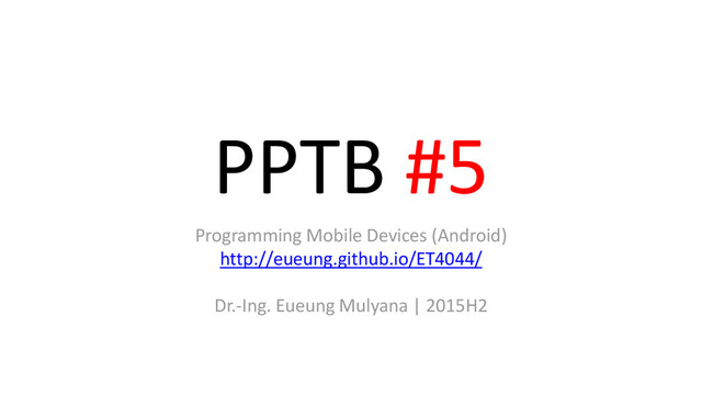 PPTB #5 Programming Mobile Devices (Android) http://eueung.github.io/ET4044/ Dr.-Ing. Eueung Mulyana