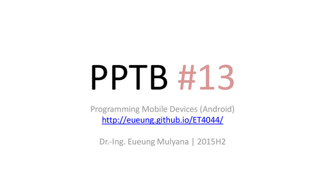 PPTB #13 Programming Mobile Devices (Android) http://eueung.github.io/ET4044/ Dr.-Ing. Eueung Mulyana