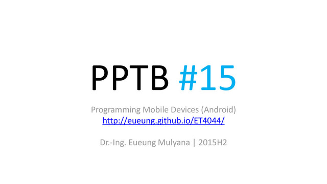 PPTB #15 Programming Mobile Devices (Android) http://eueung.github.io/ET4044/ Dr.-Ing. Eueung Mulyana