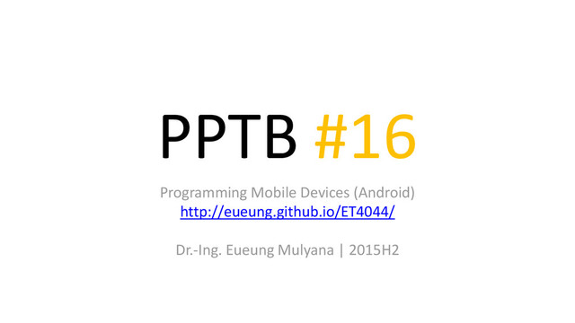 PPTB #16 Programming Mobile Devices (Android) http://eueung.github.io/ET4044/ Dr.-Ing. Eueung Mulyana