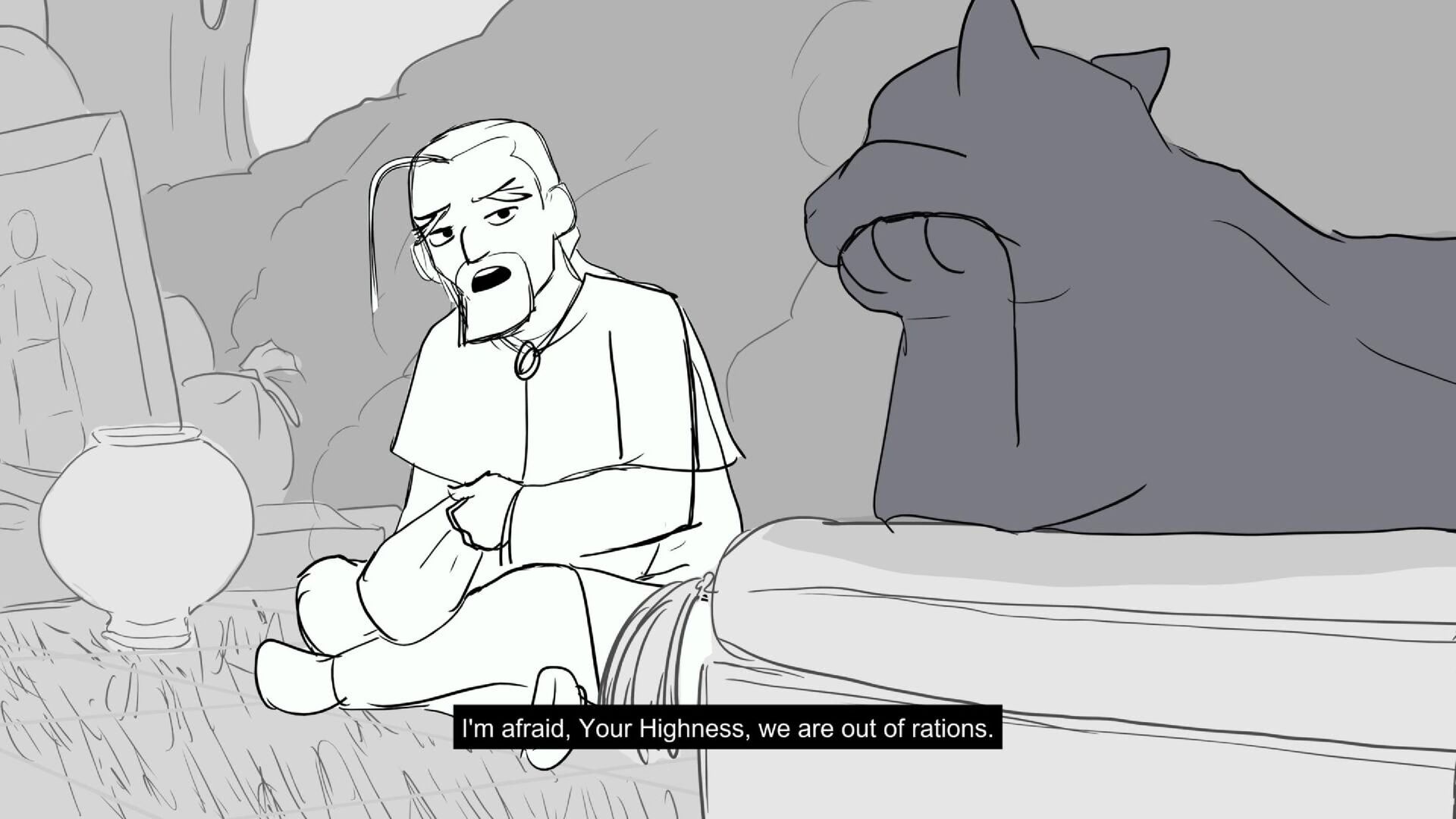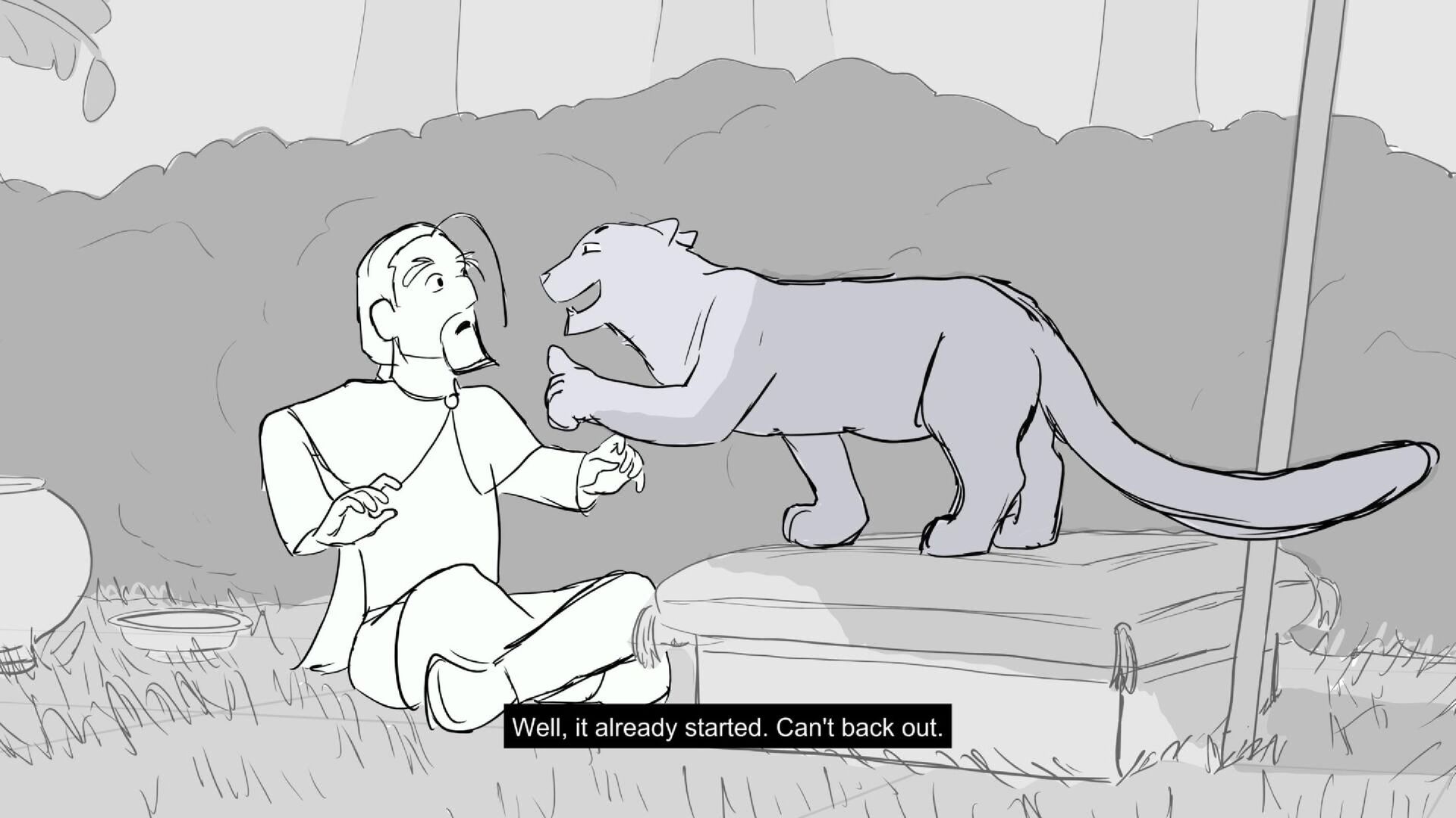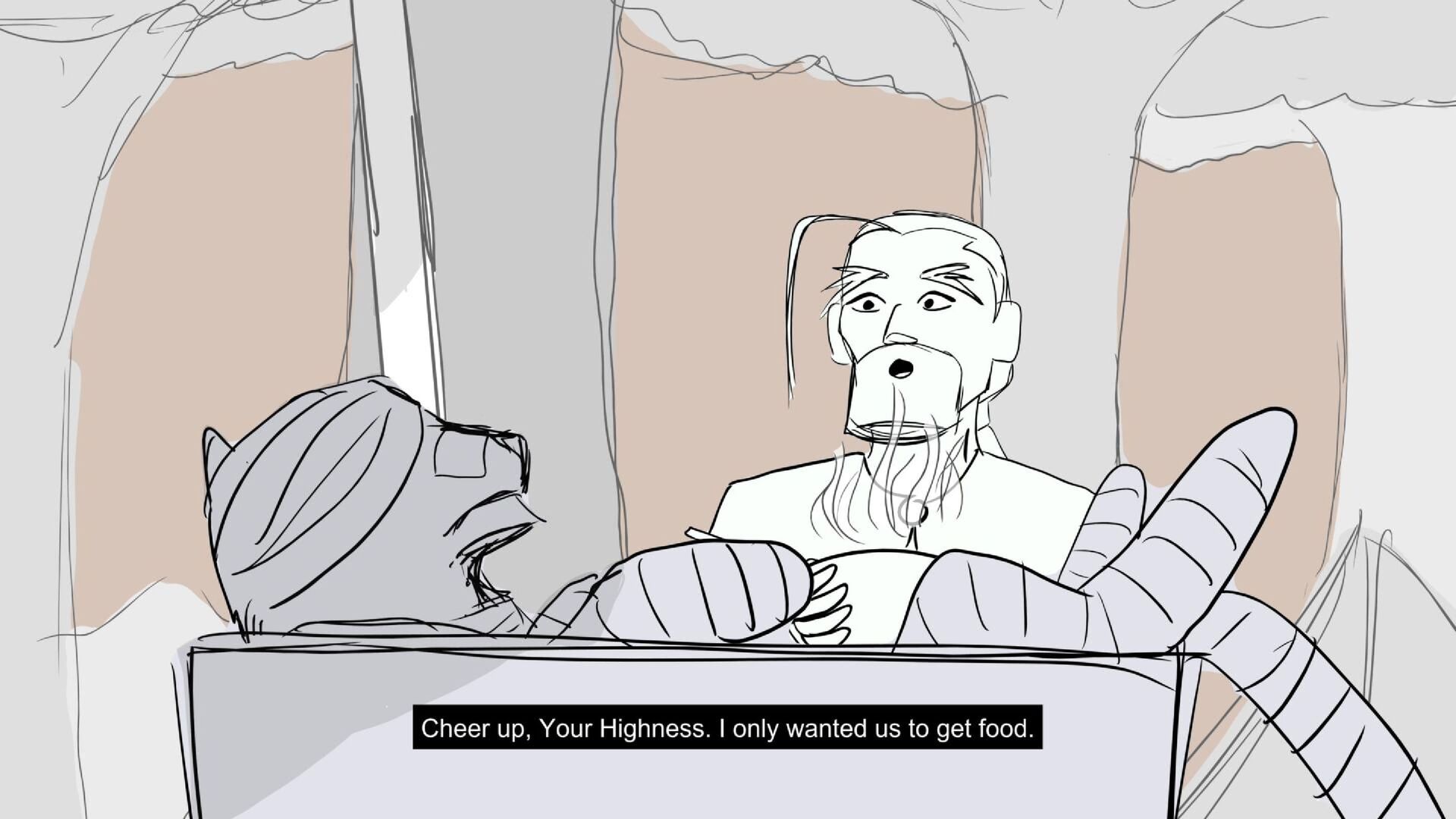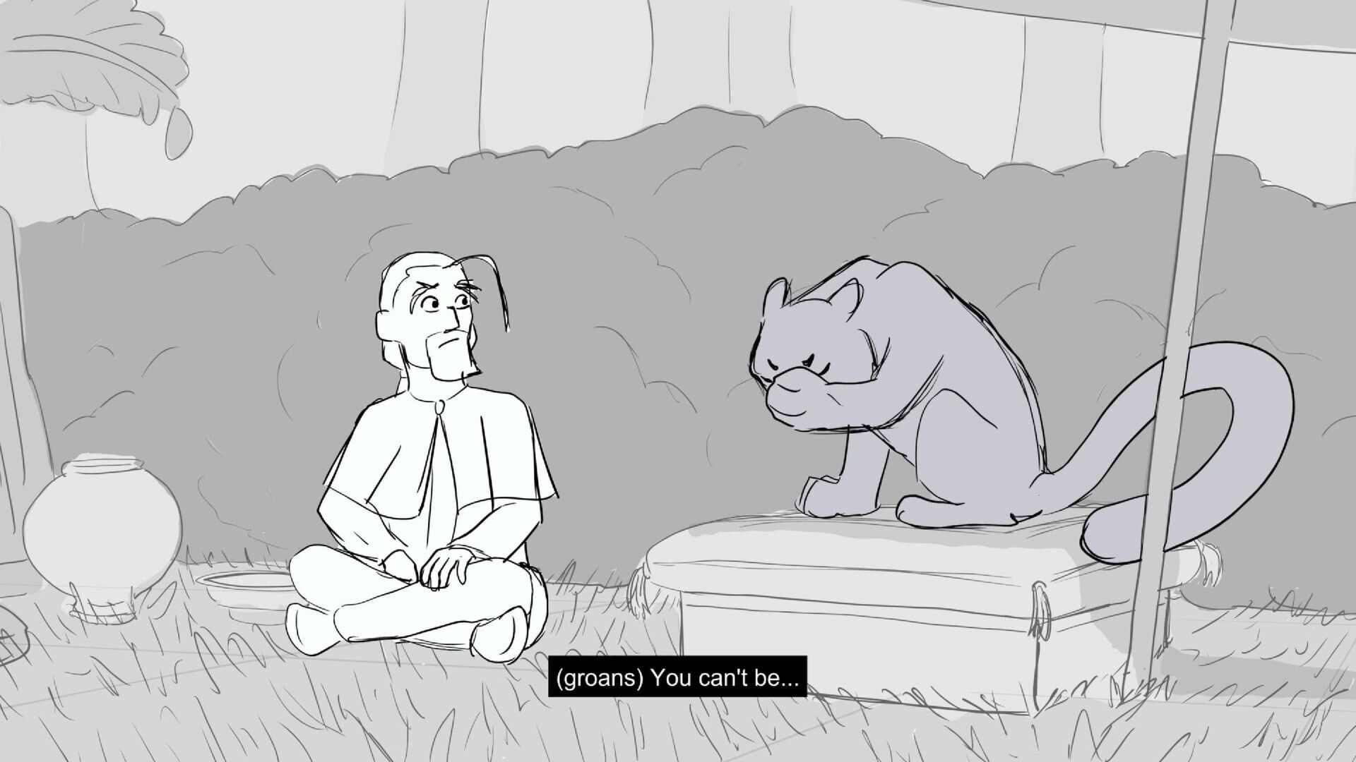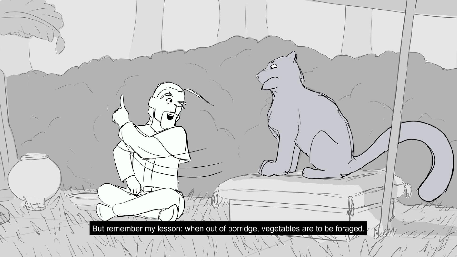 A cursed prince and his tutor are on a journey to undo said curse. Along the way, they ran out of food, so the prince made a bet on how to obtain food. His method of winning the bet hit upon a series of mishaps.