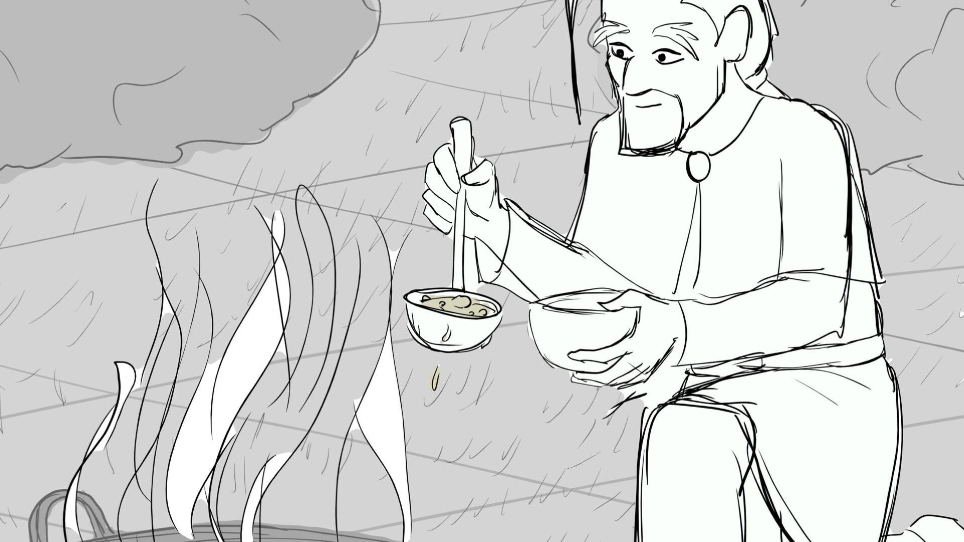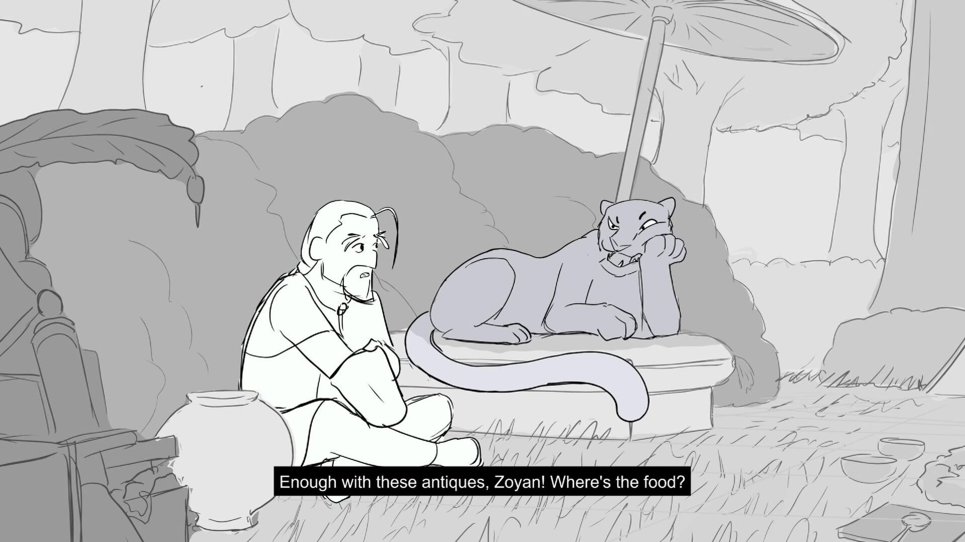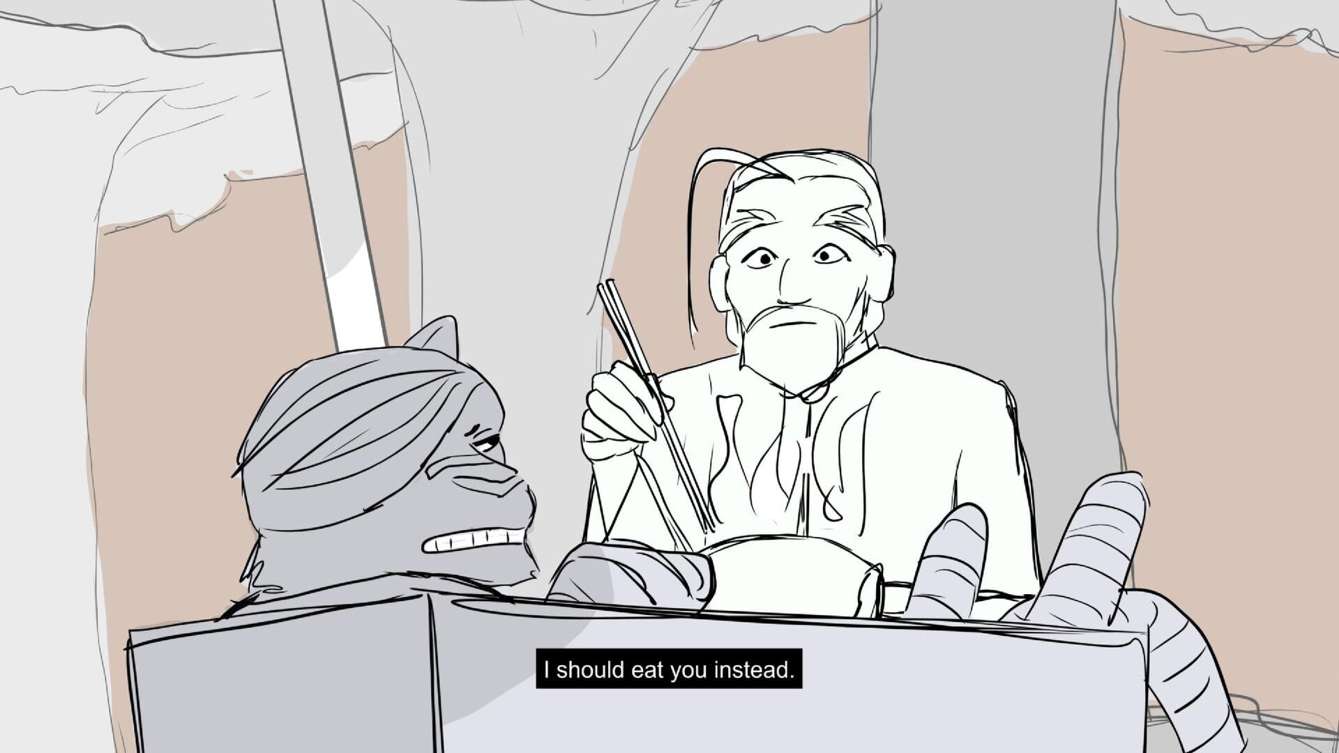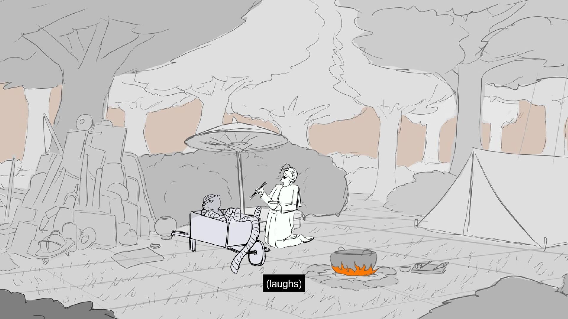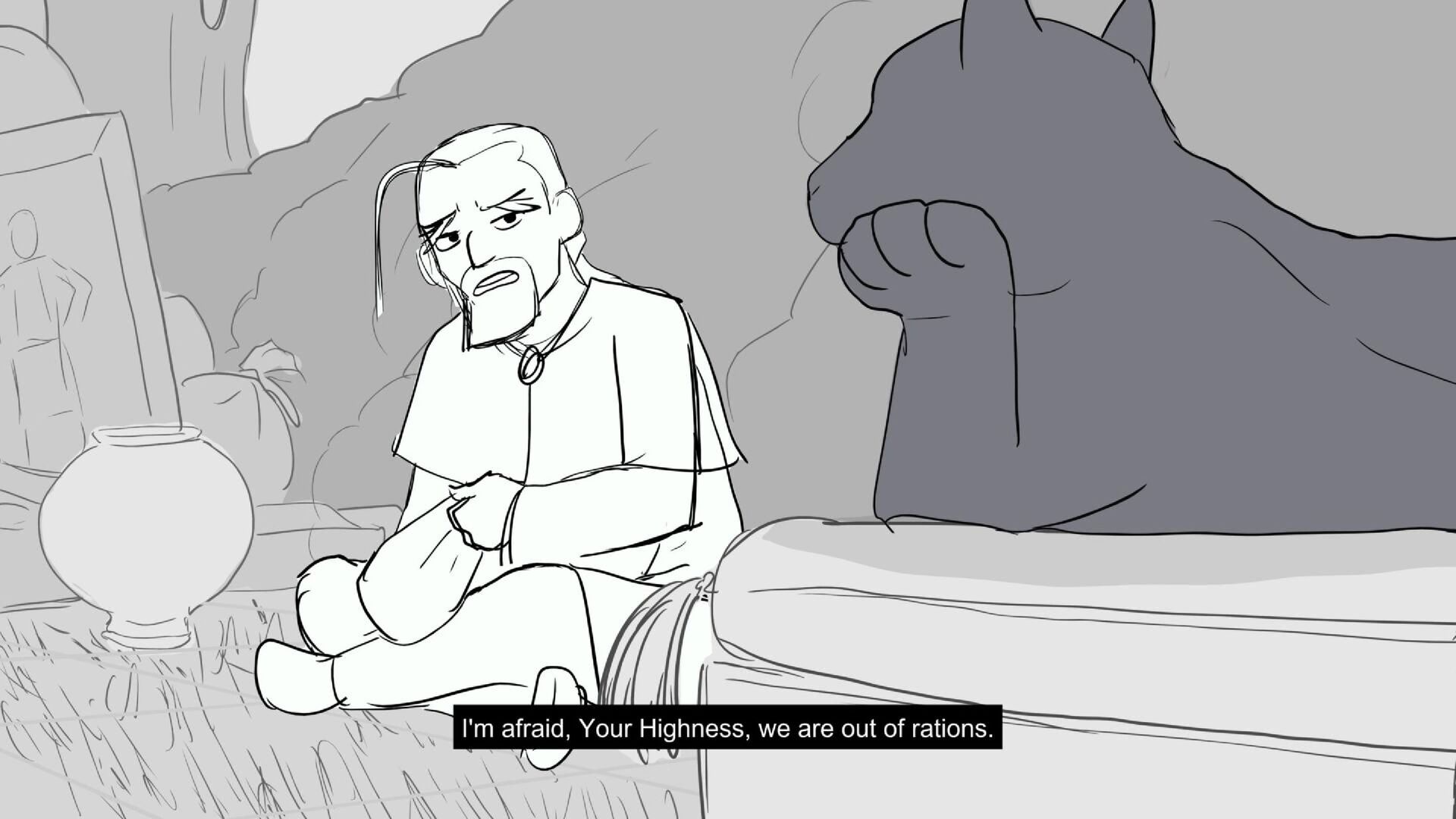A cursed prince and his tutor are on a journey to undo said curse. Along the way, they ran out of food, so the prince made a bet on how to obtain food. His method of winning the bet hit upon a series of mishaps.