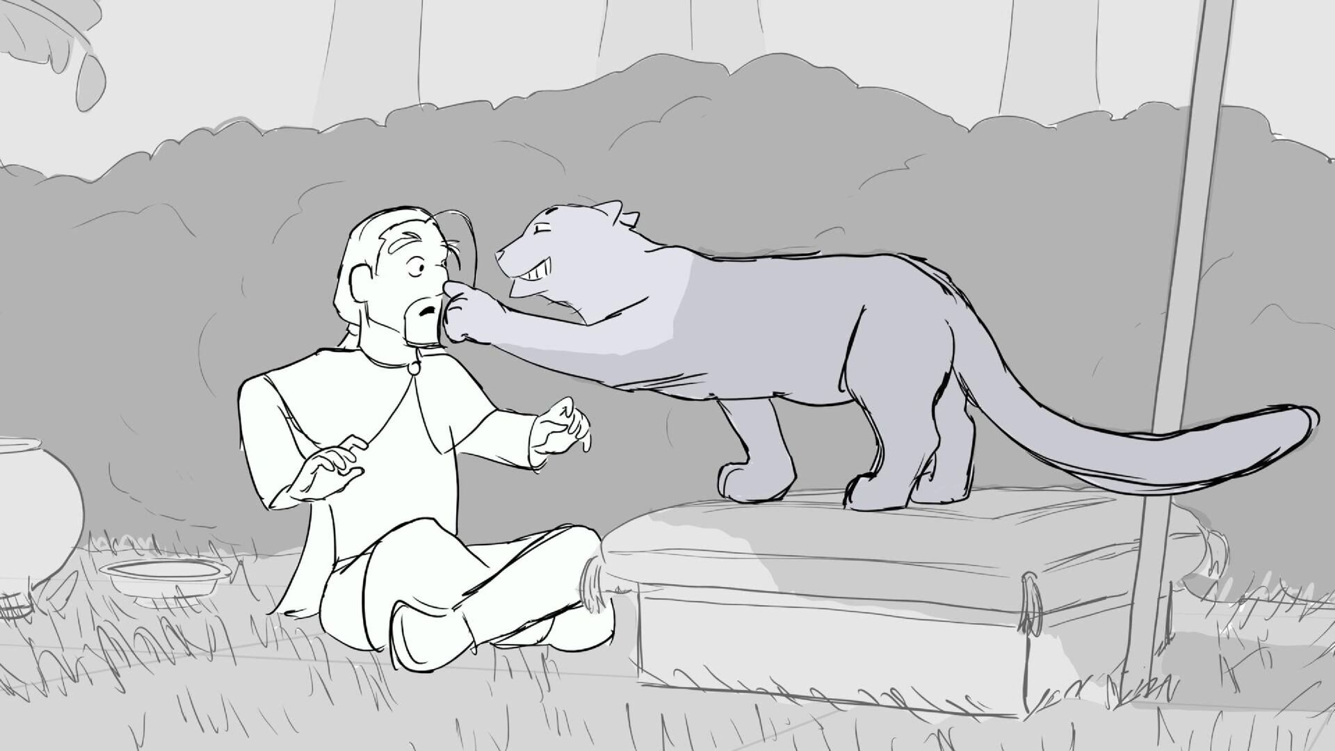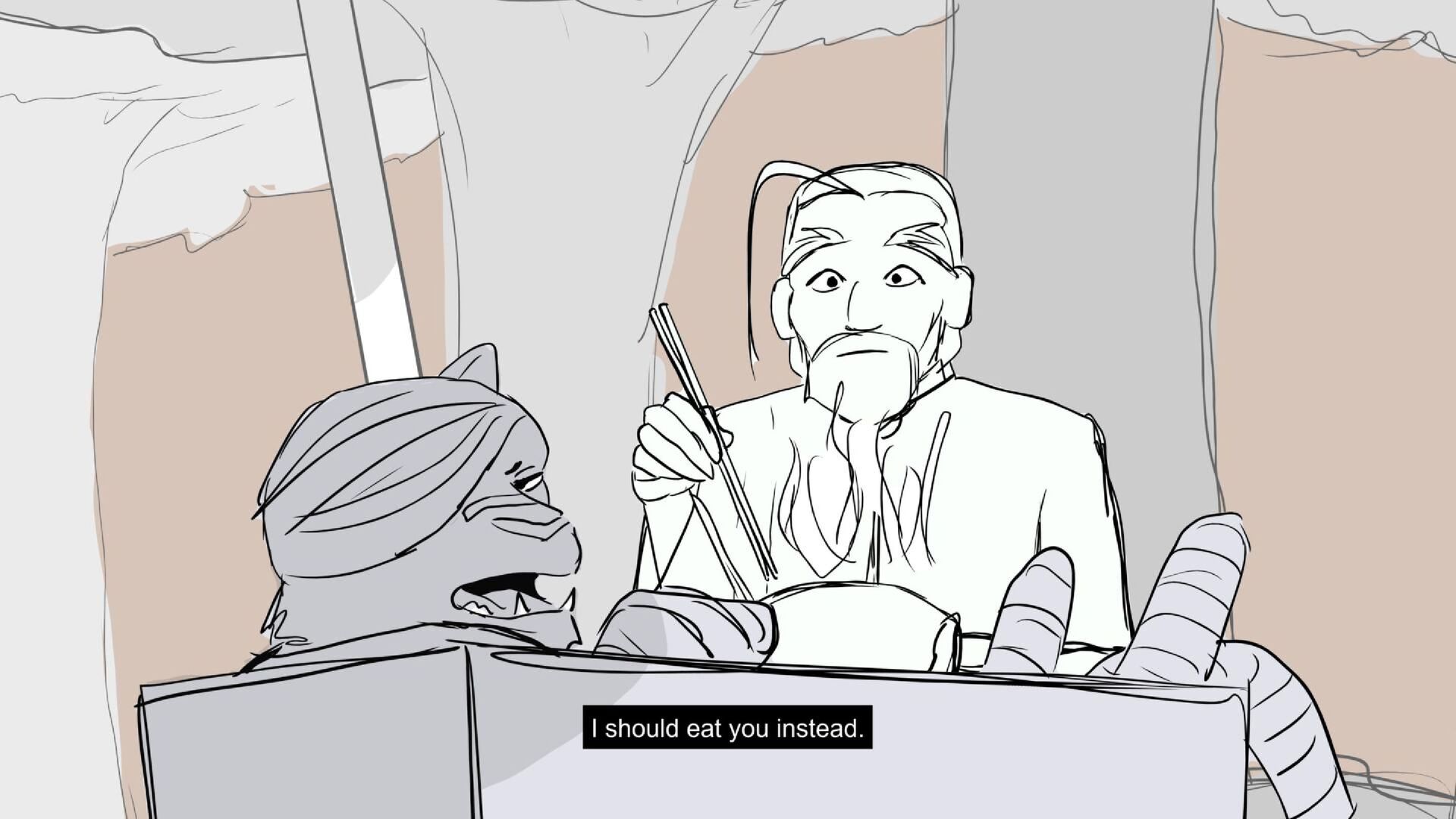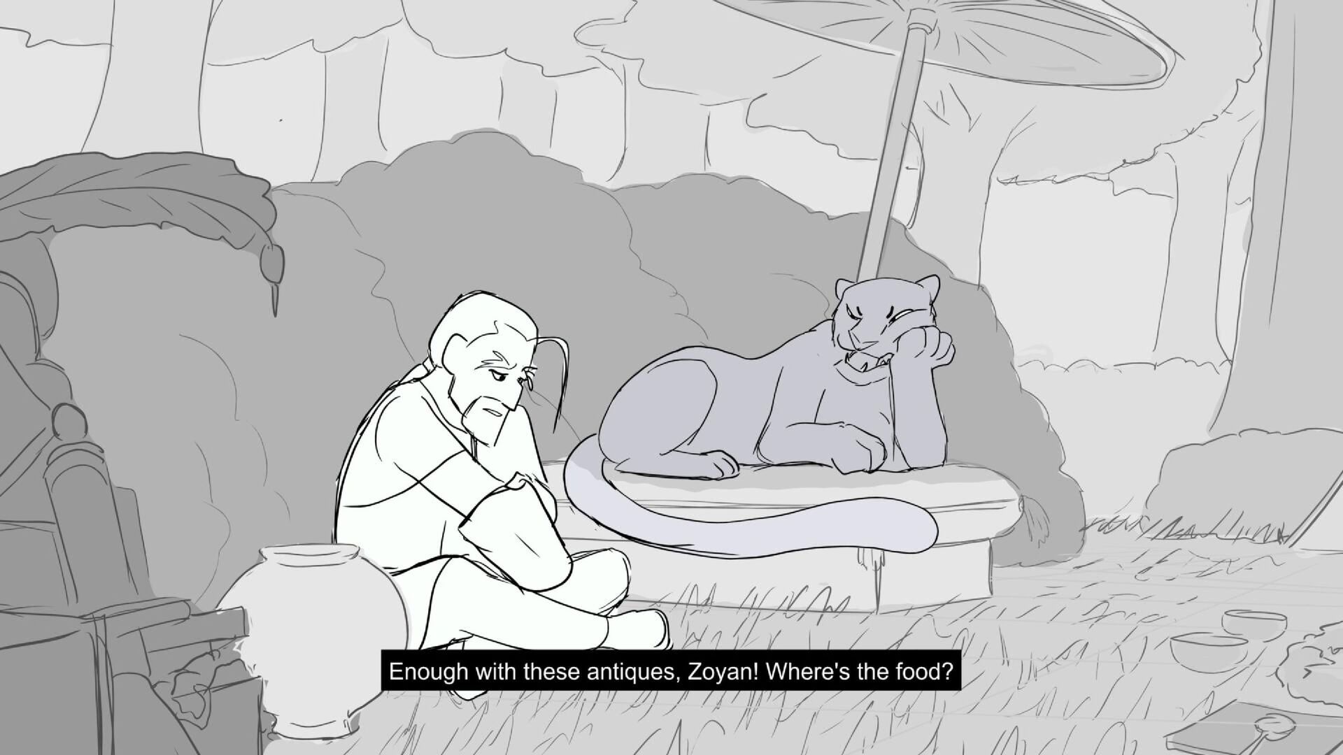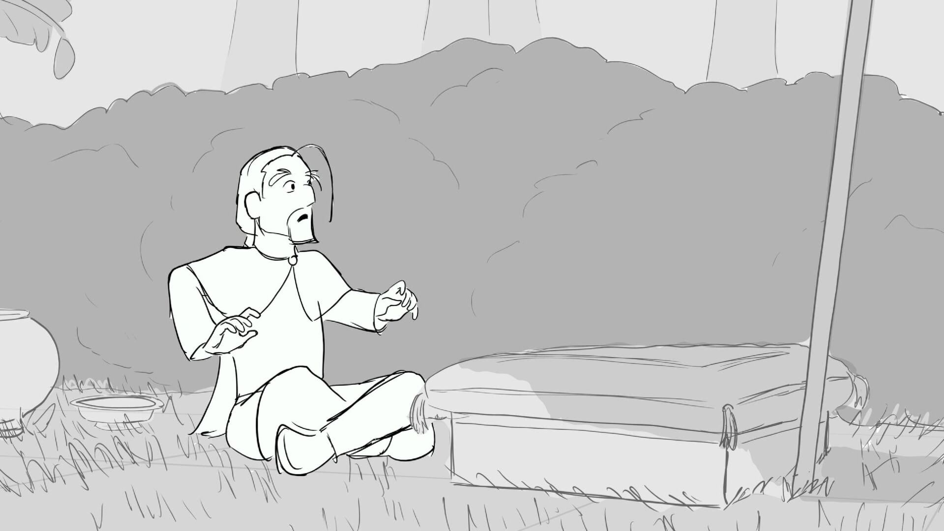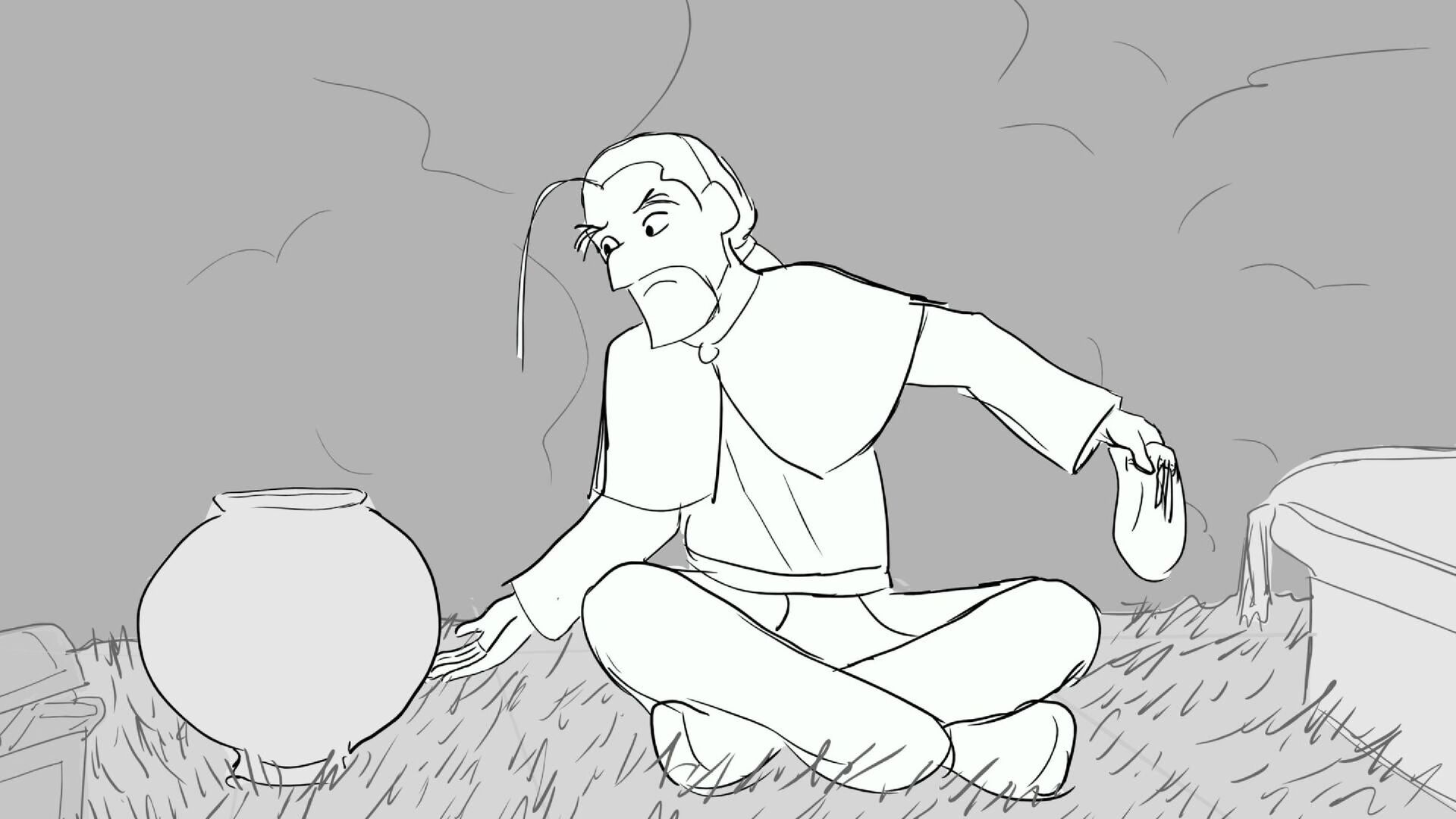 A cursed prince and his tutor are on a journey to undo said curse. Along the way, they ran out of food, so the prince made a bet on how to obtain food. His method of winning the bet hit upon a series of mishaps.
