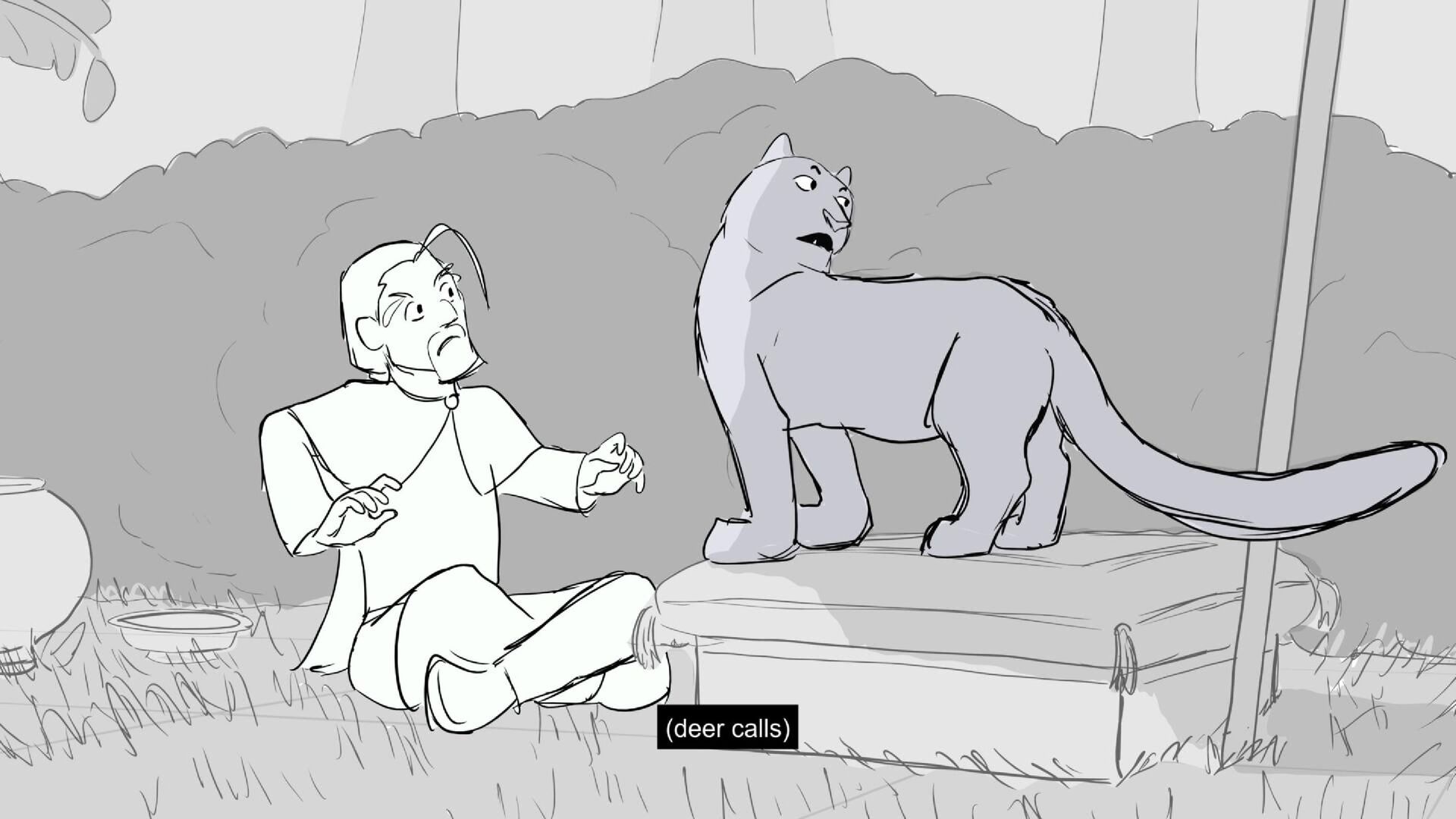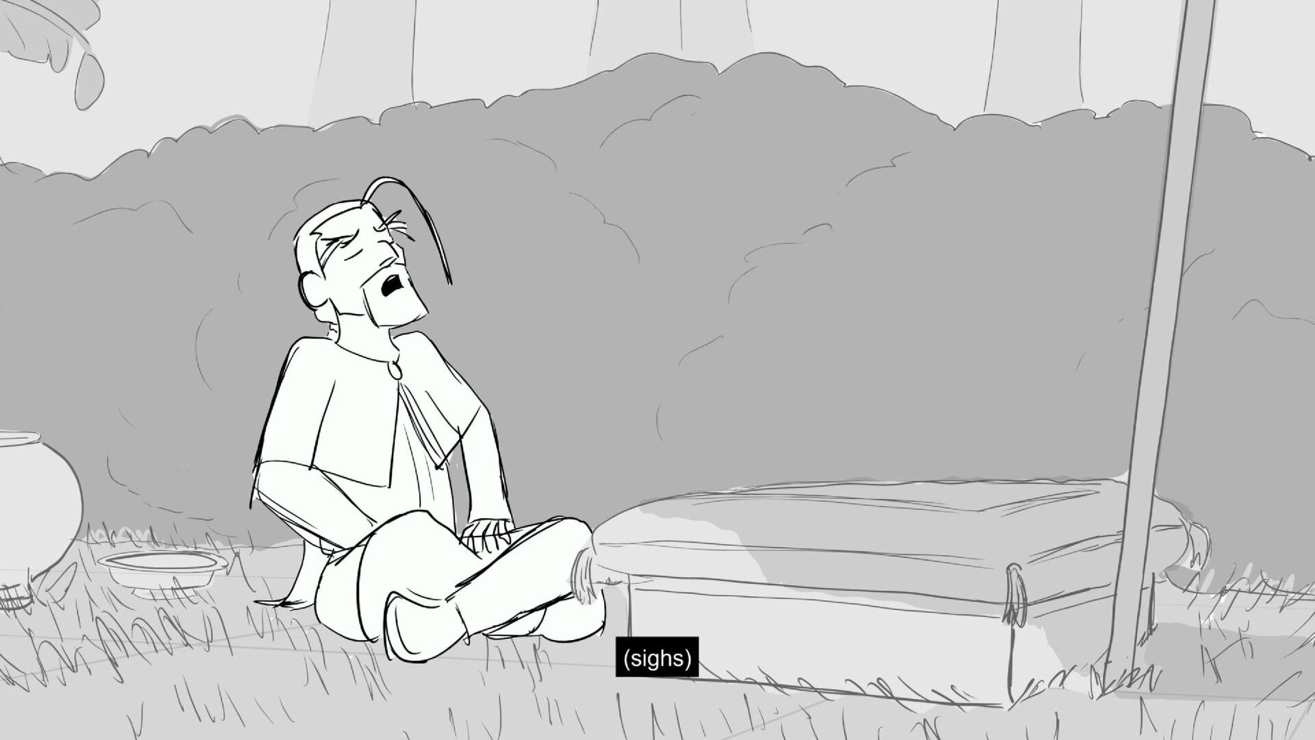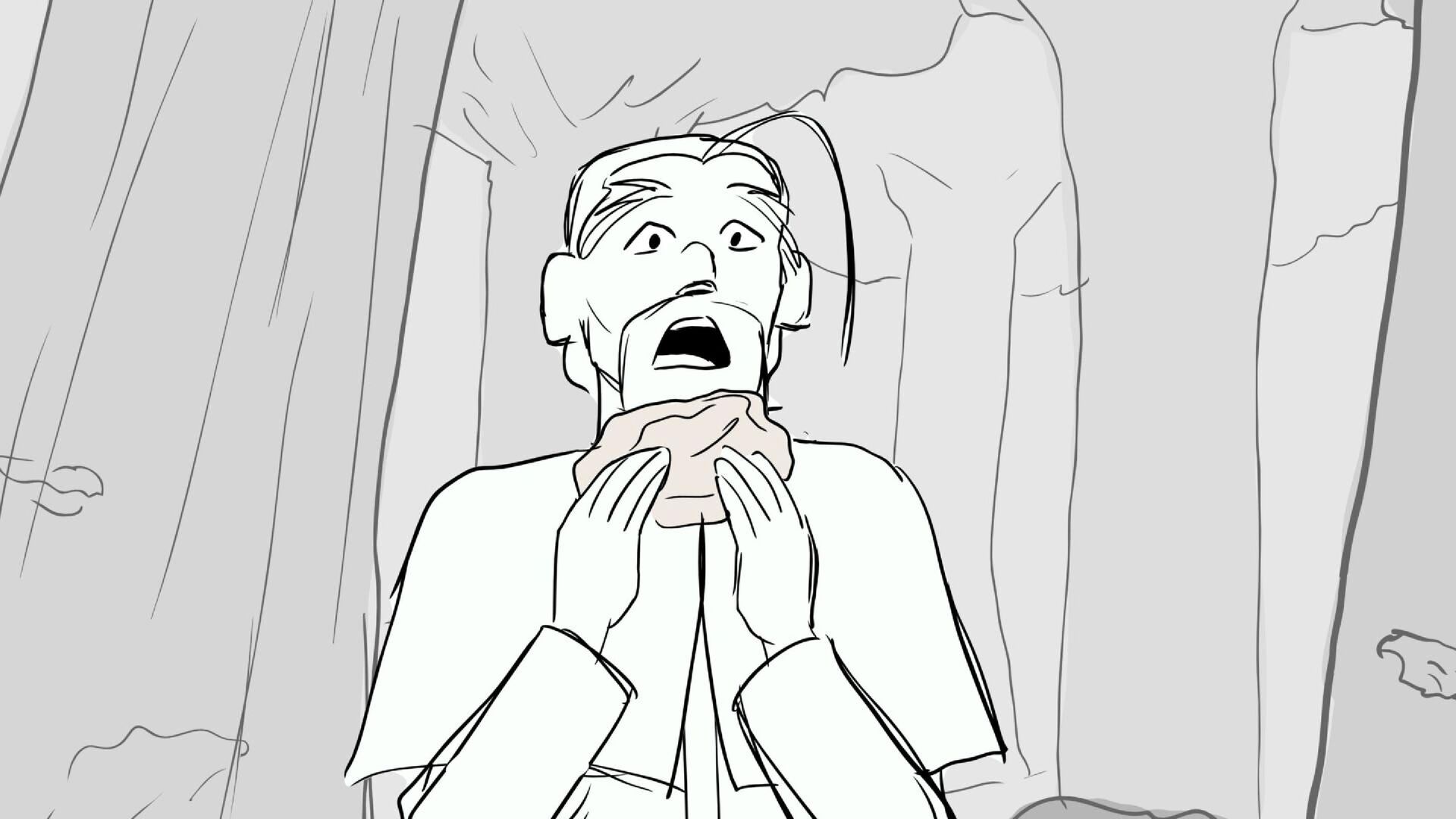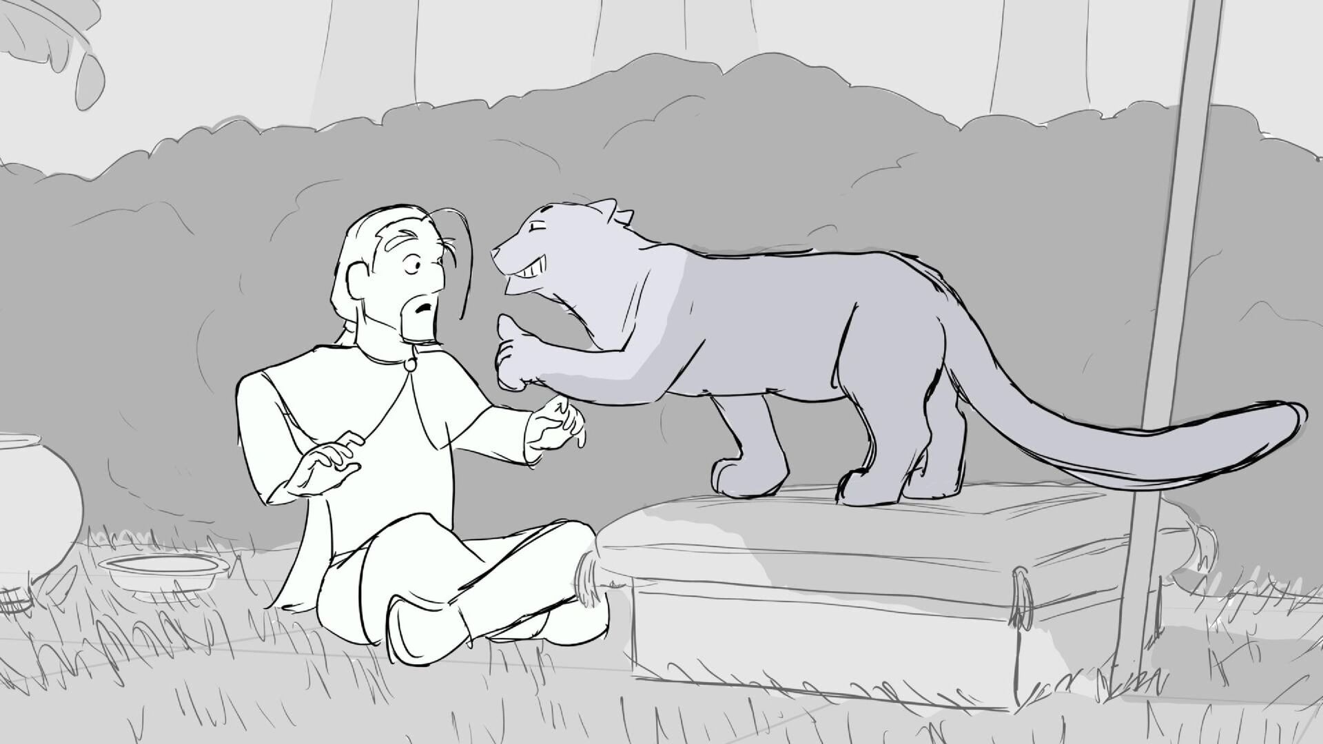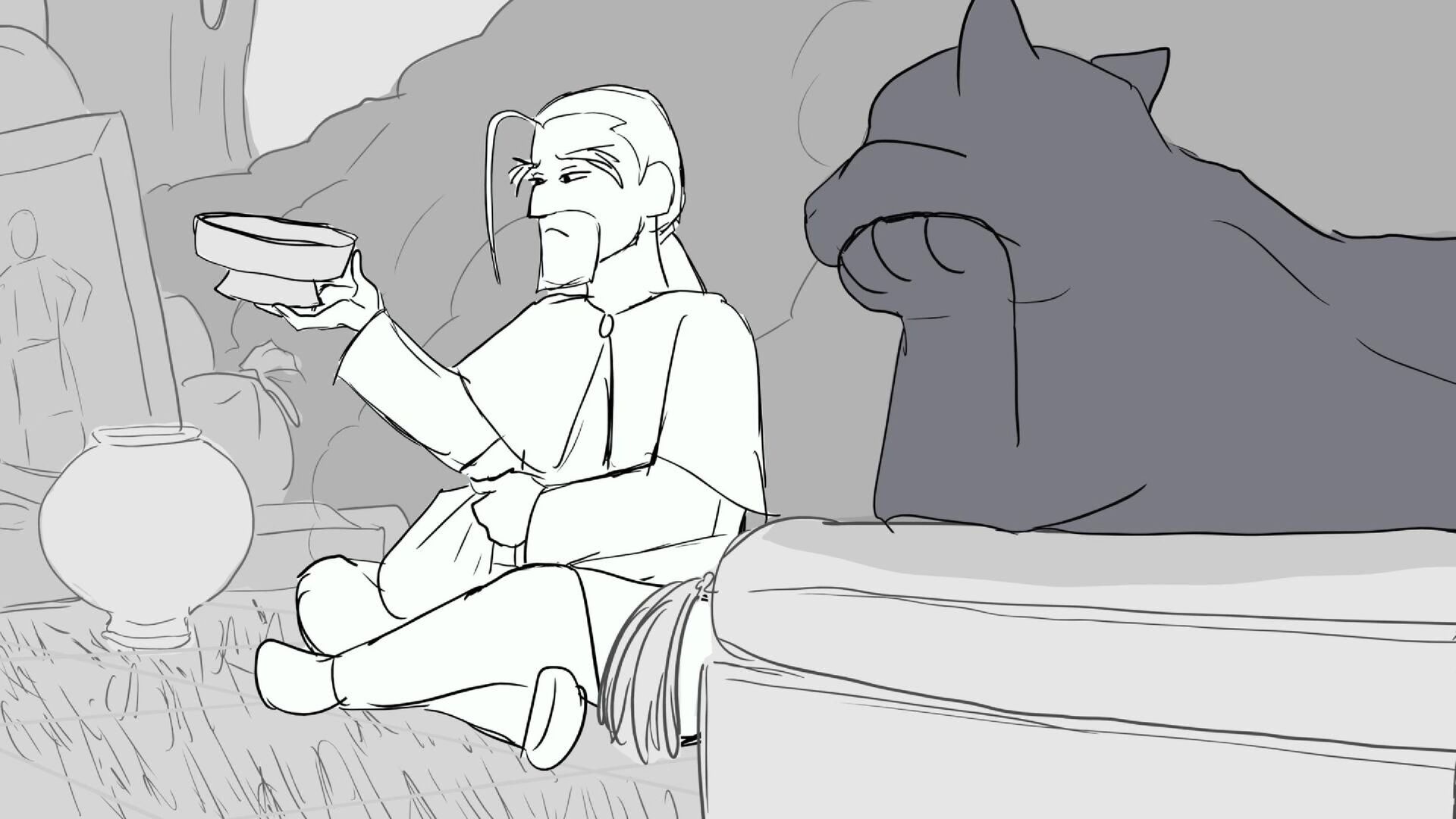 A cursed prince and his tutor are on a journey to undo said curse. Along the way, they ran out of food, so the prince made a bet on how to obtain food. His method of winning the bet hit upon a series of mishaps.