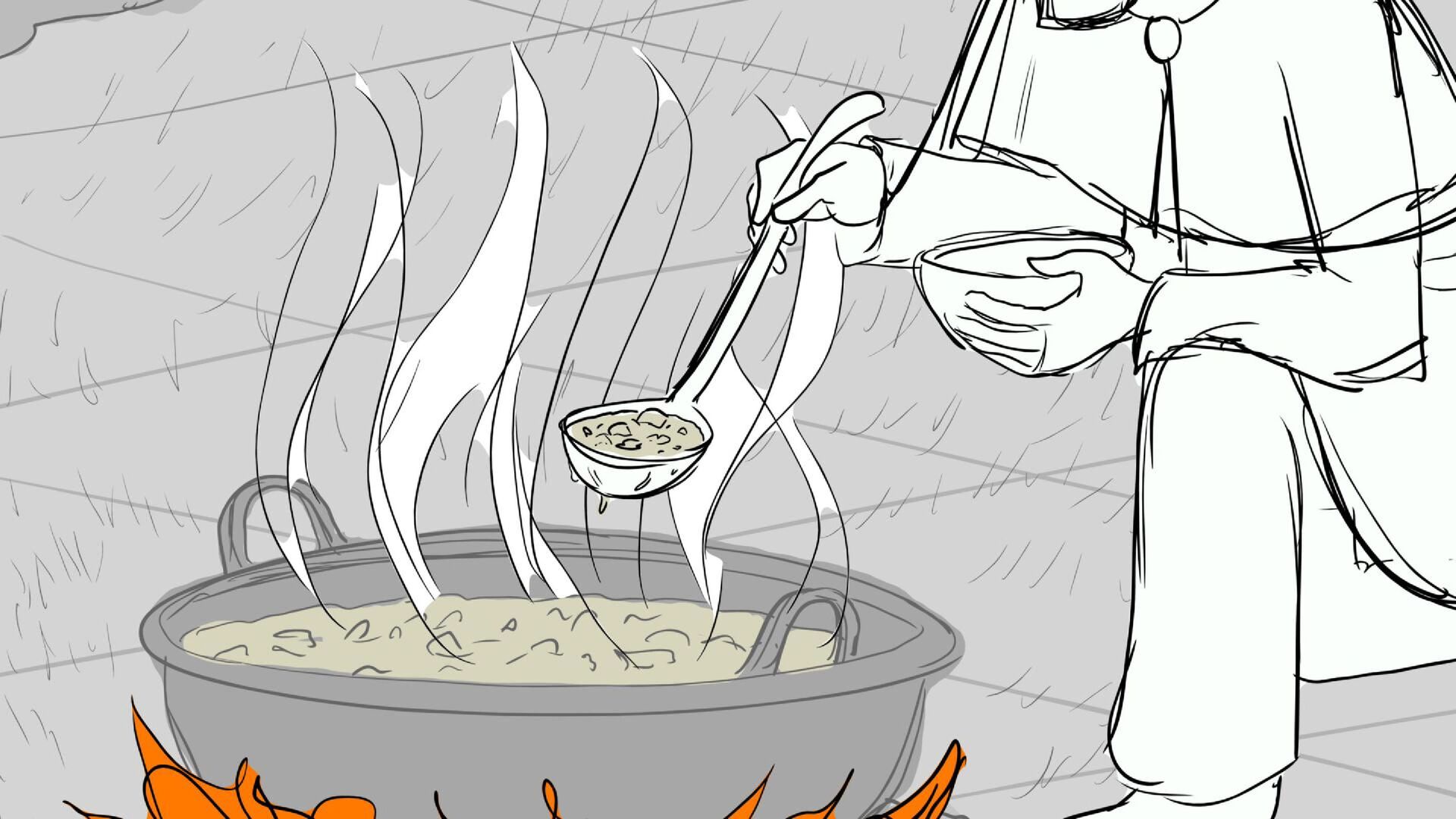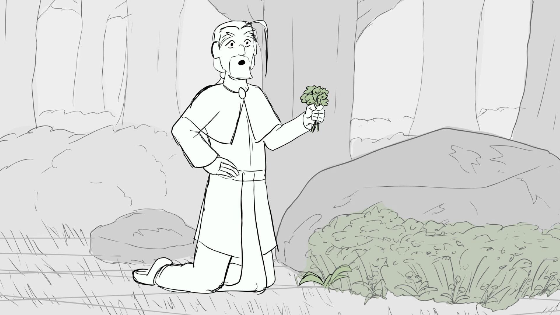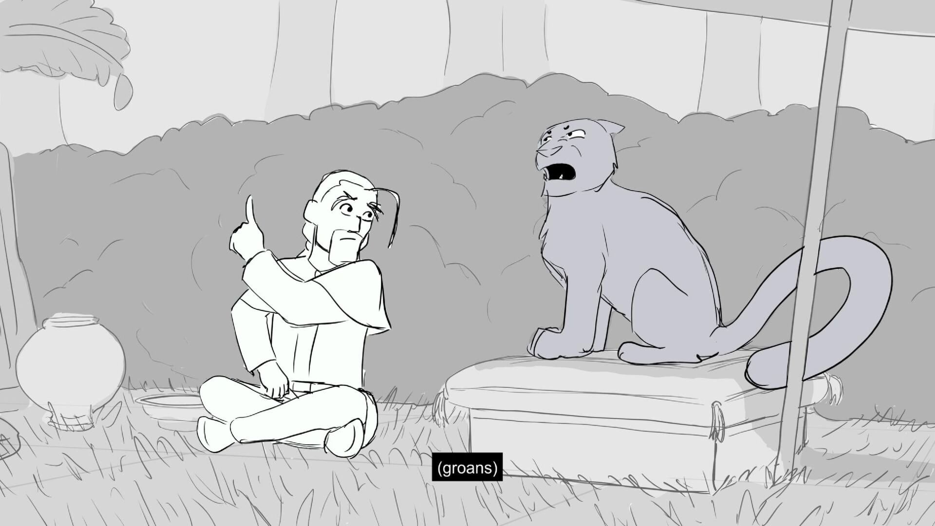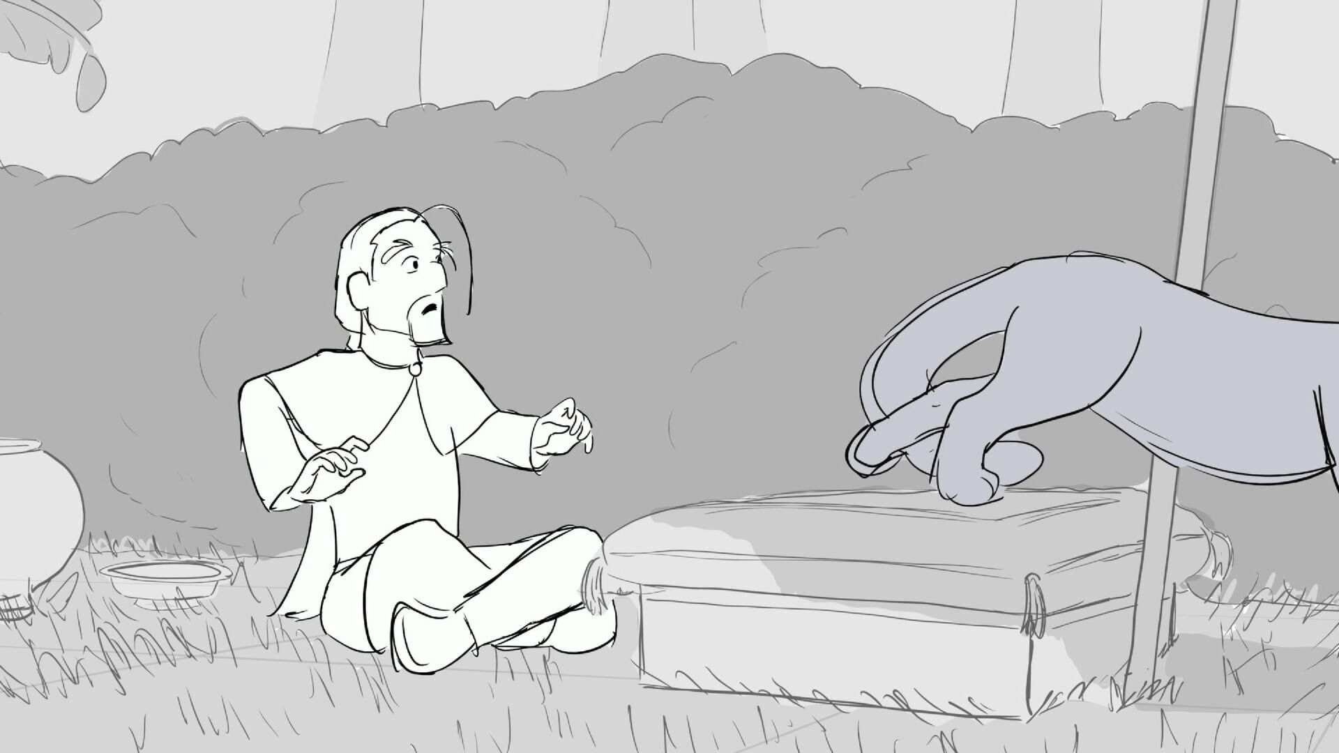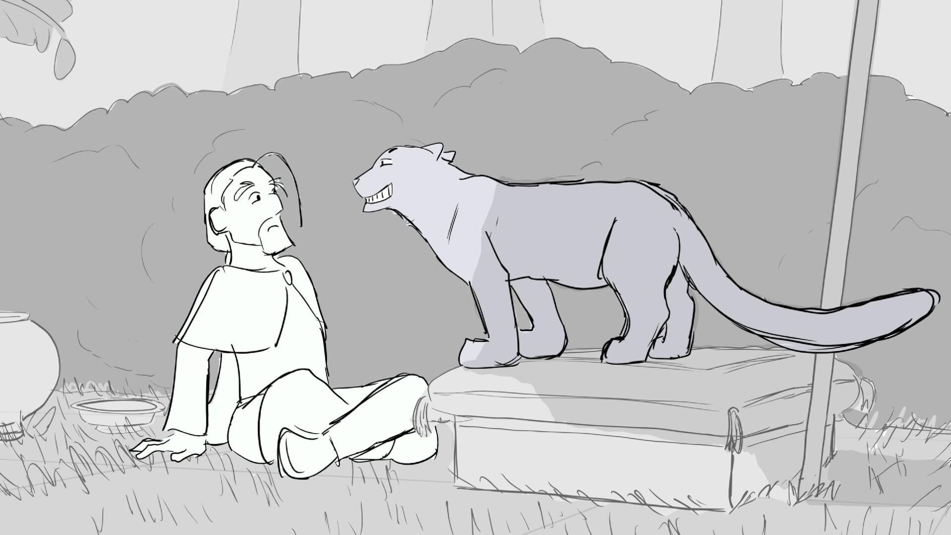 A cursed prince and his tutor are on a journey to undo said curse. Along the way, they ran out of food, so the prince made a bet on how to obtain food. His method of winning the bet hit upon a series of mishaps.