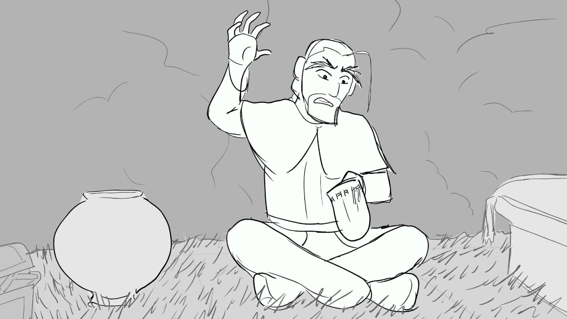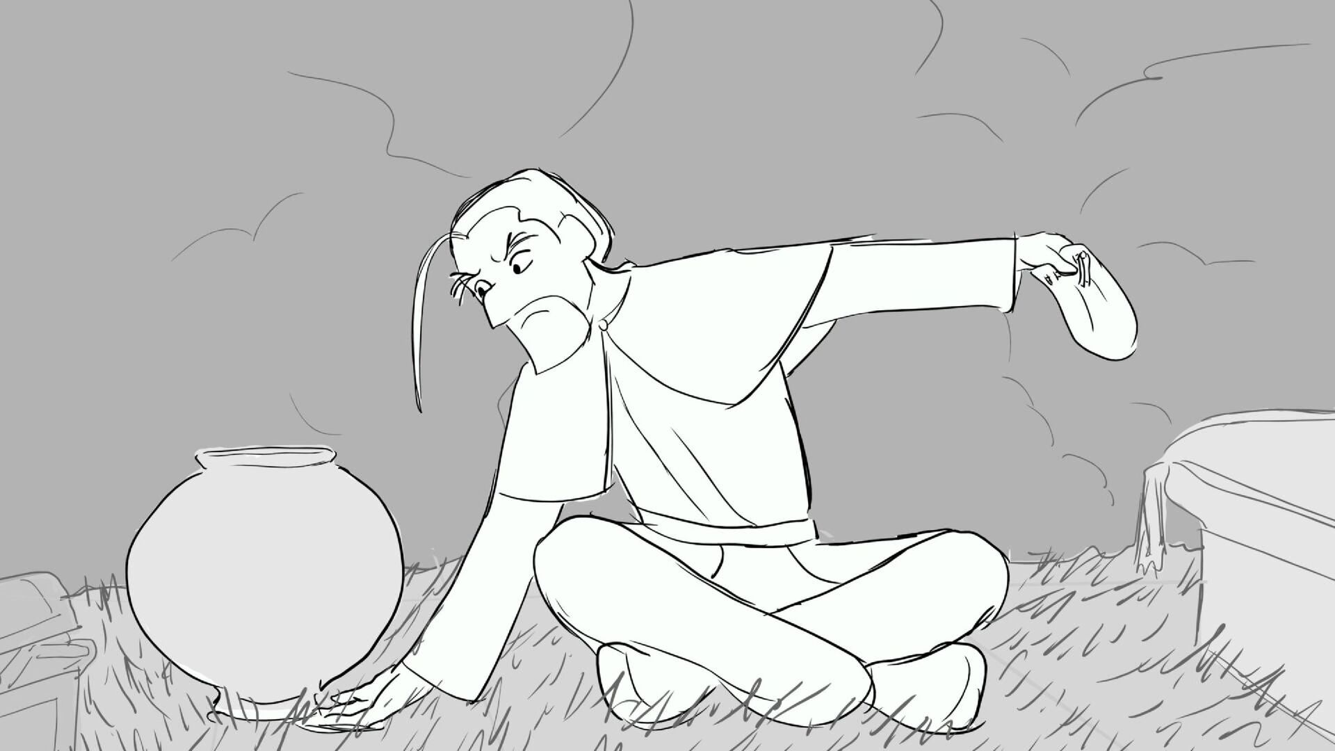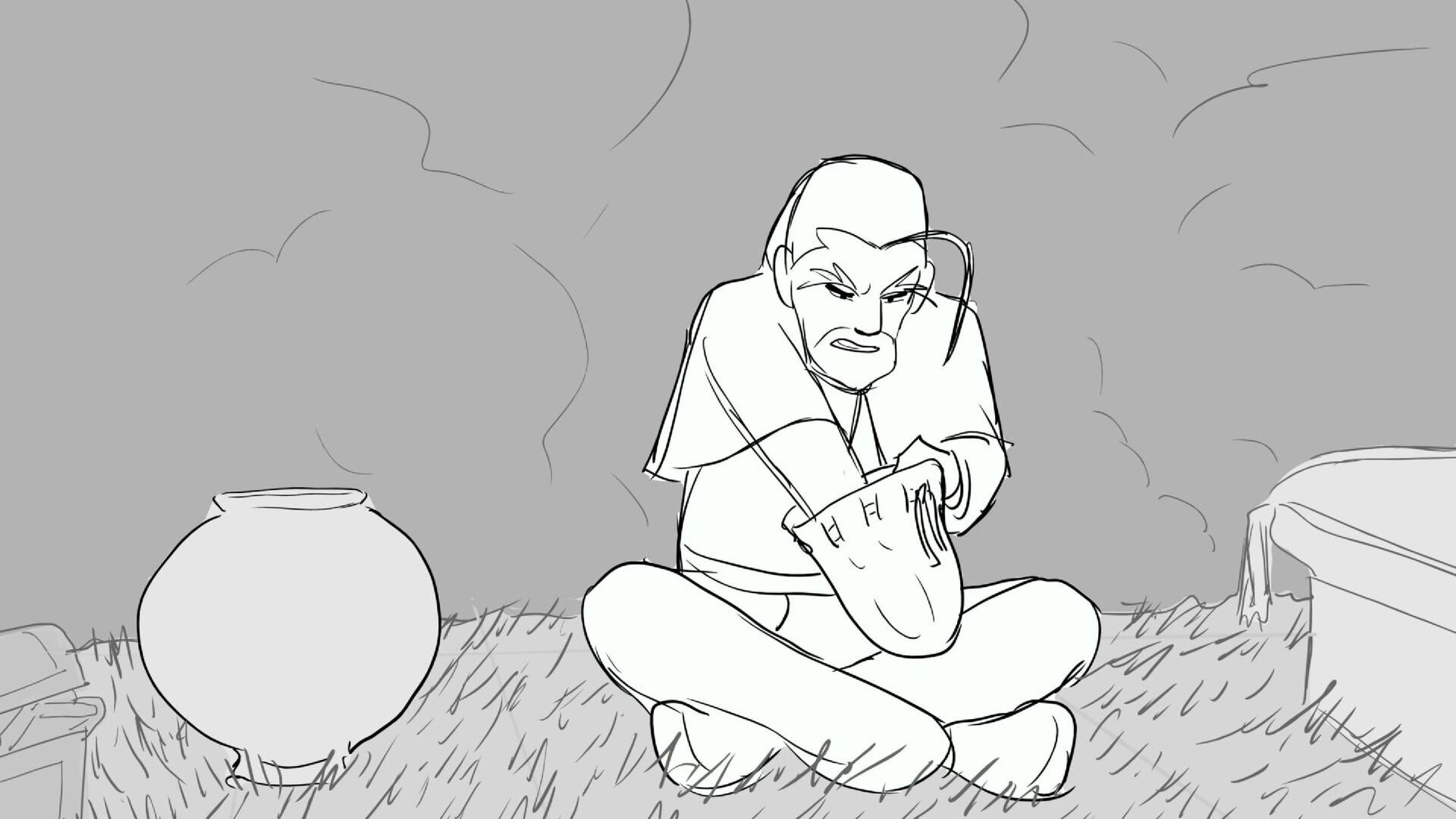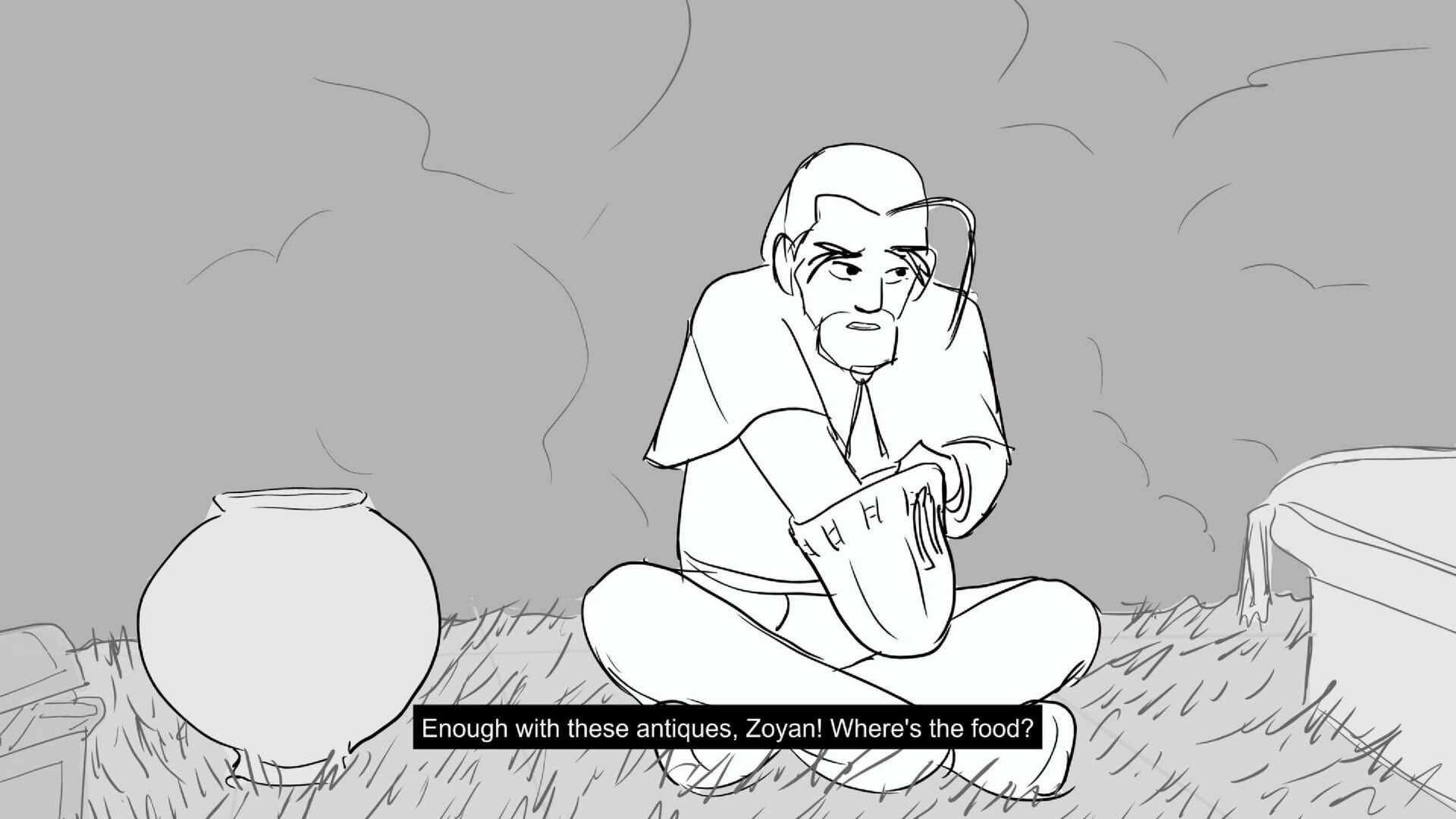 A cursed prince and his tutor are on a journey to undo said curse. Along the way, they ran out of food, so the prince made a bet on how to obtain food. His method of winning the bet hit upon a series of mishaps.