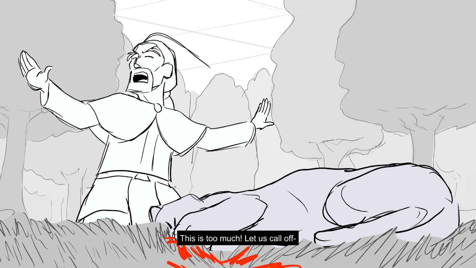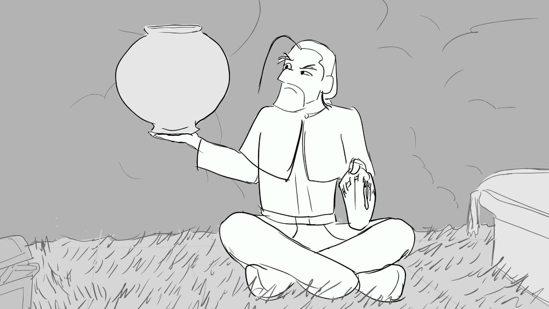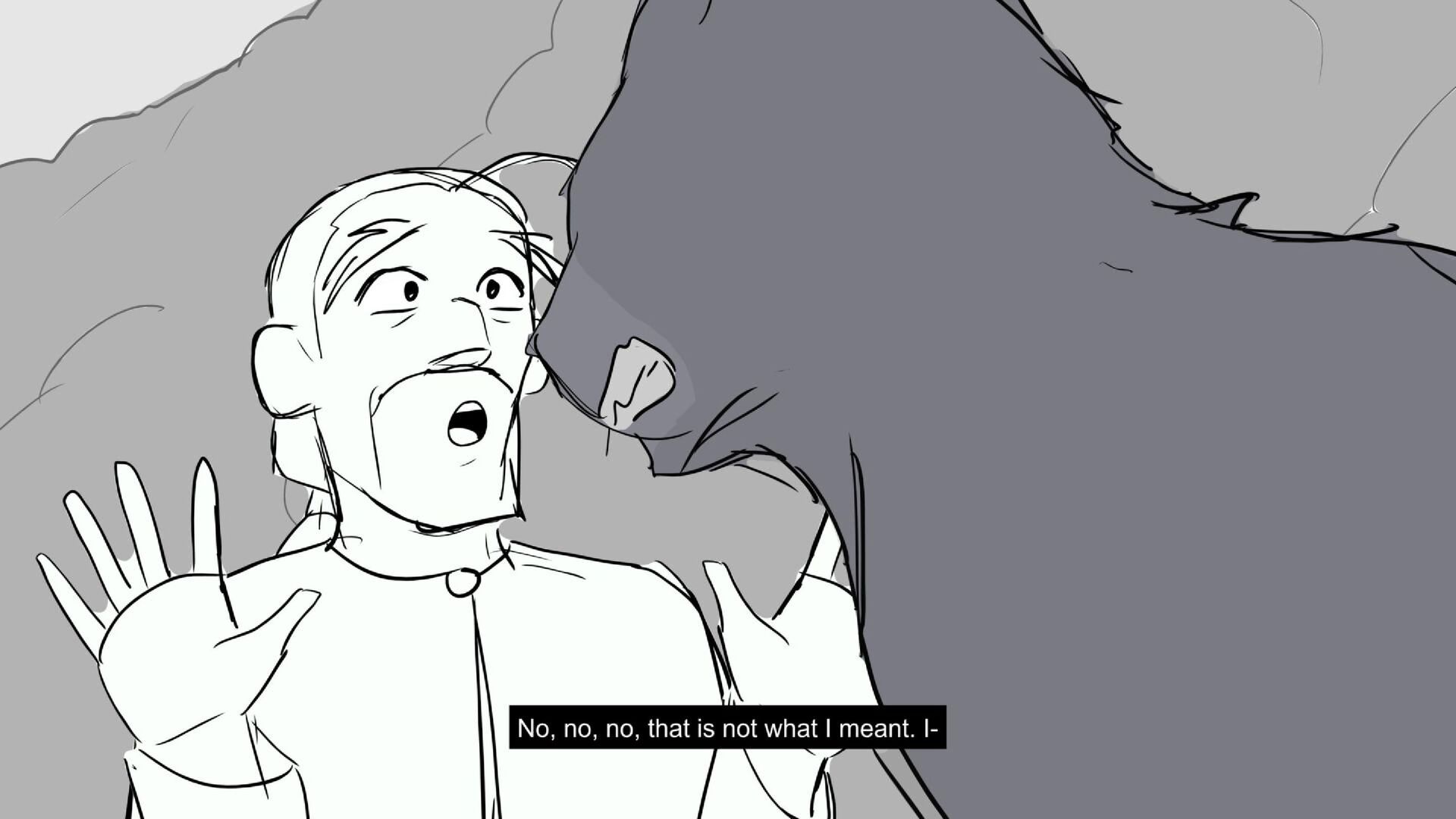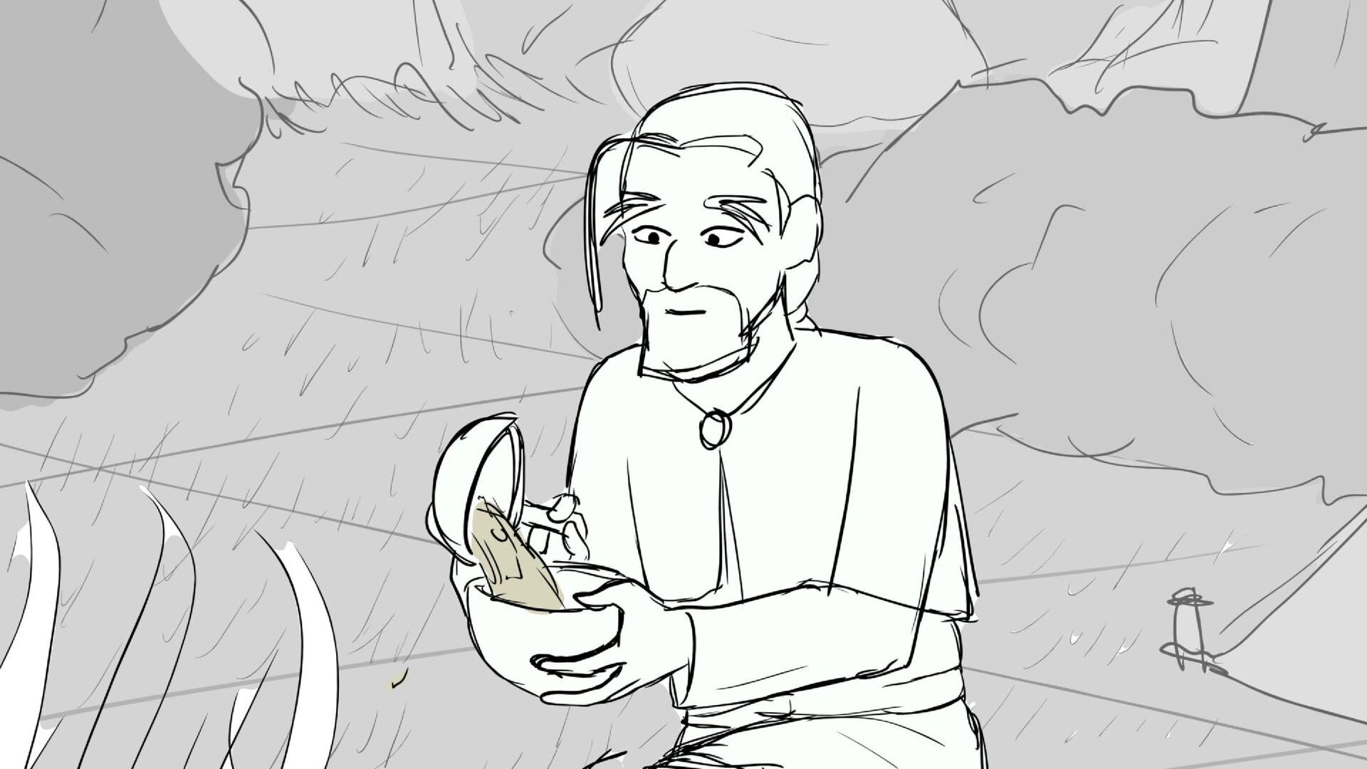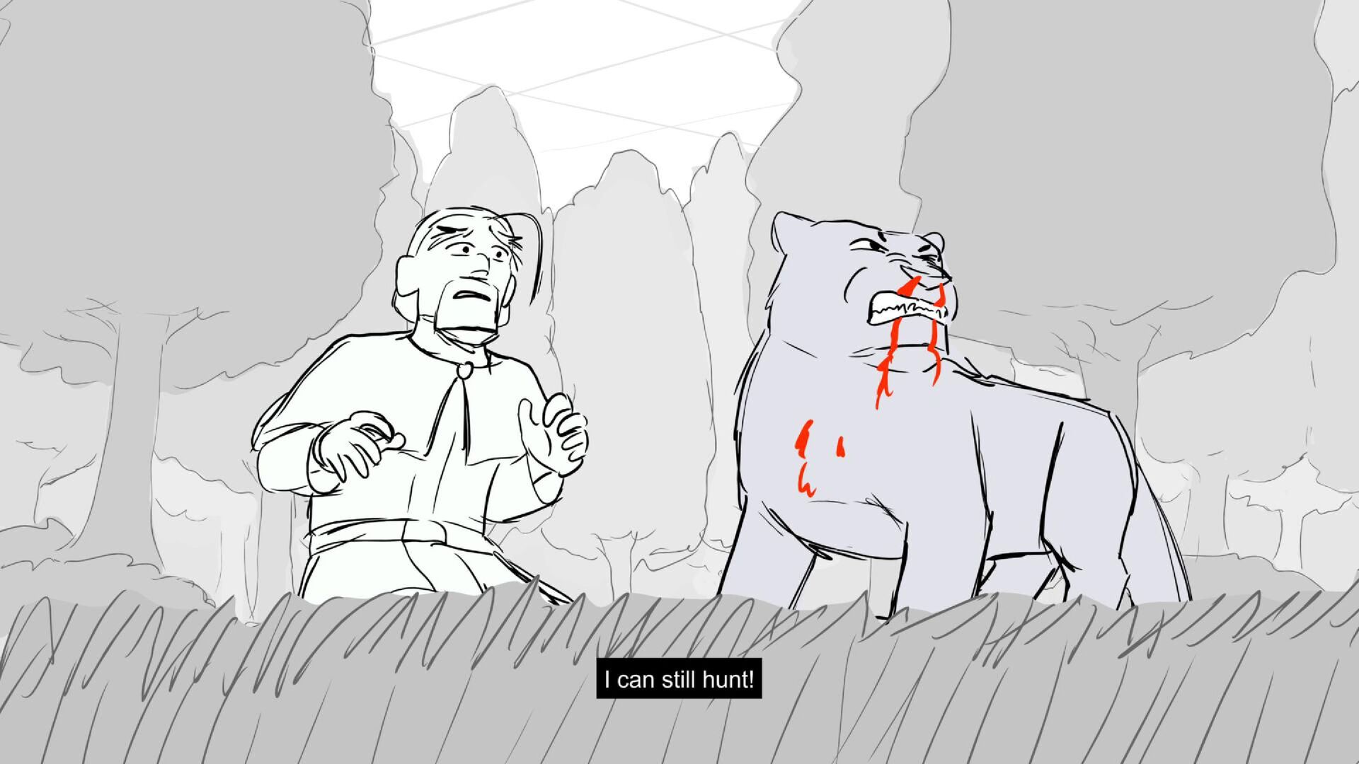 A cursed prince and his tutor are on a journey to undo said curse. Along the way, they ran out of food, so the prince made a bet on how to obtain food. His method of winning the bet hit upon a series of mishaps.