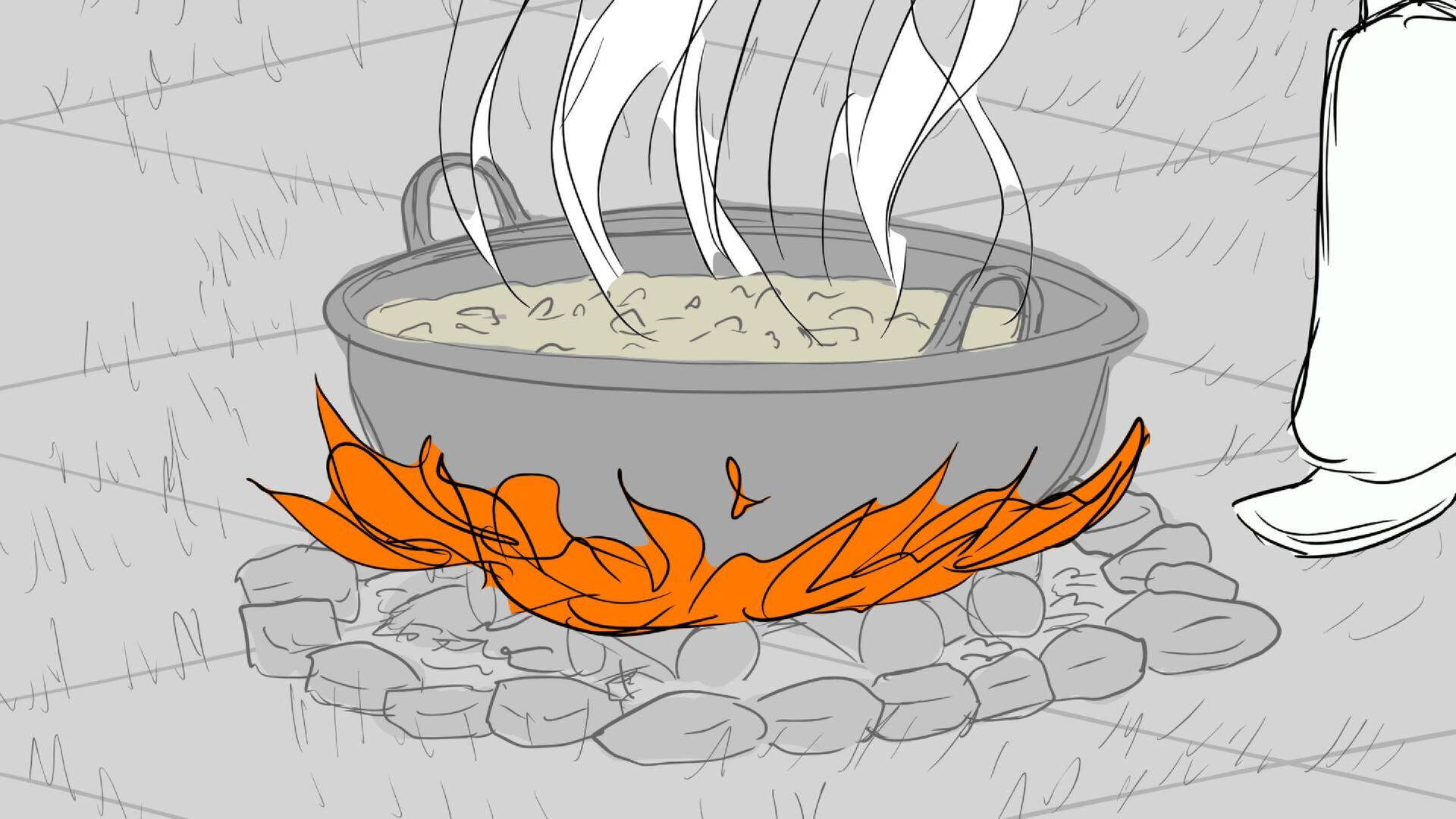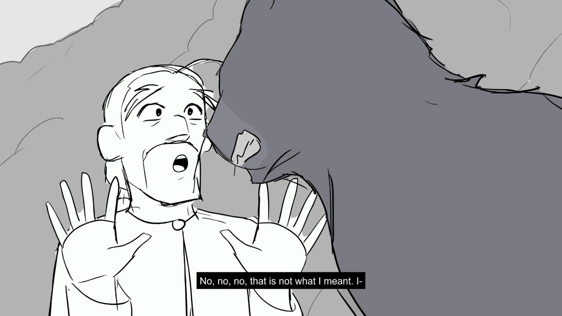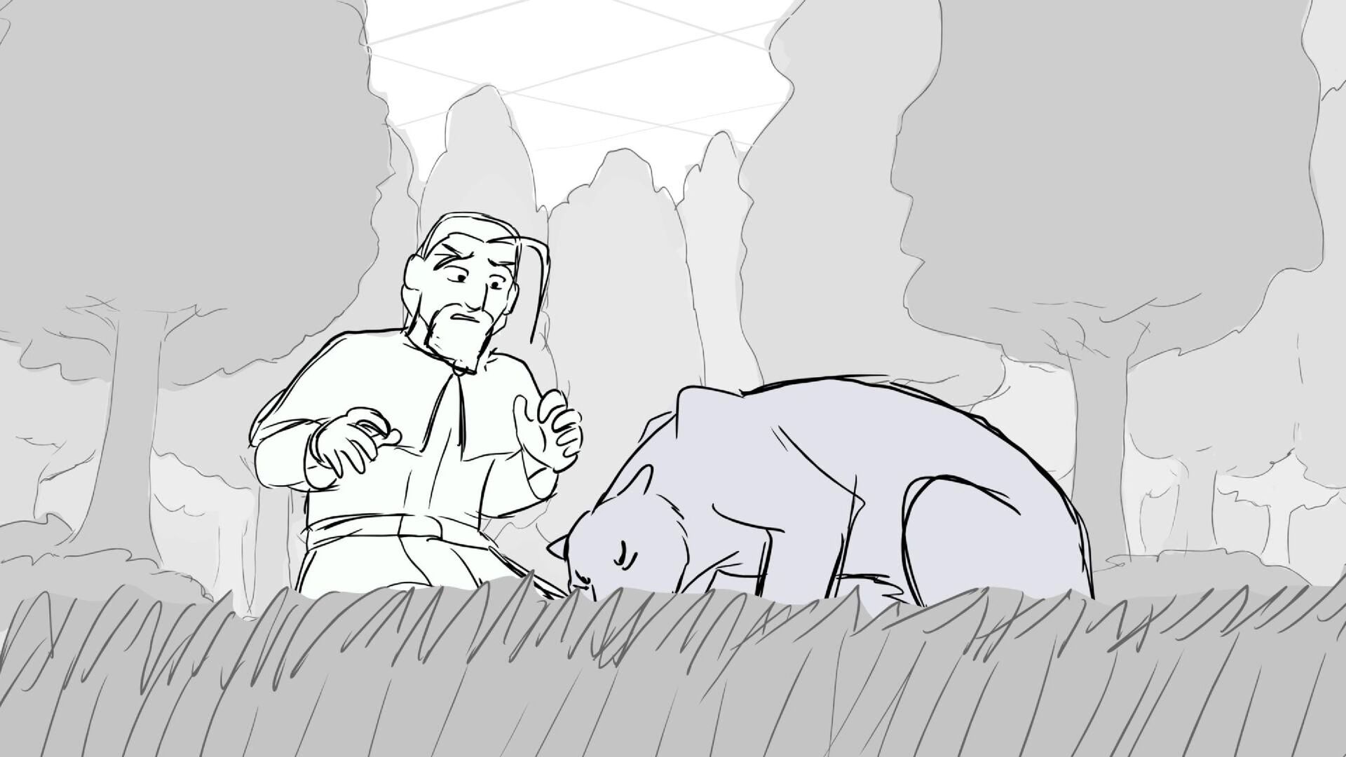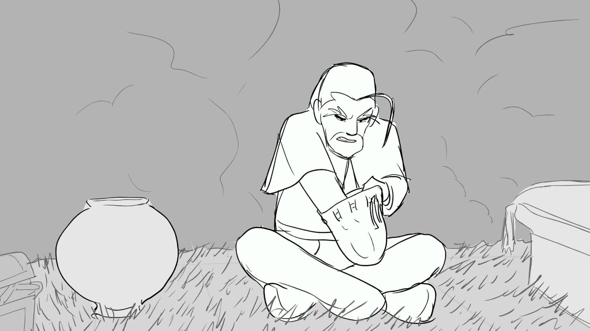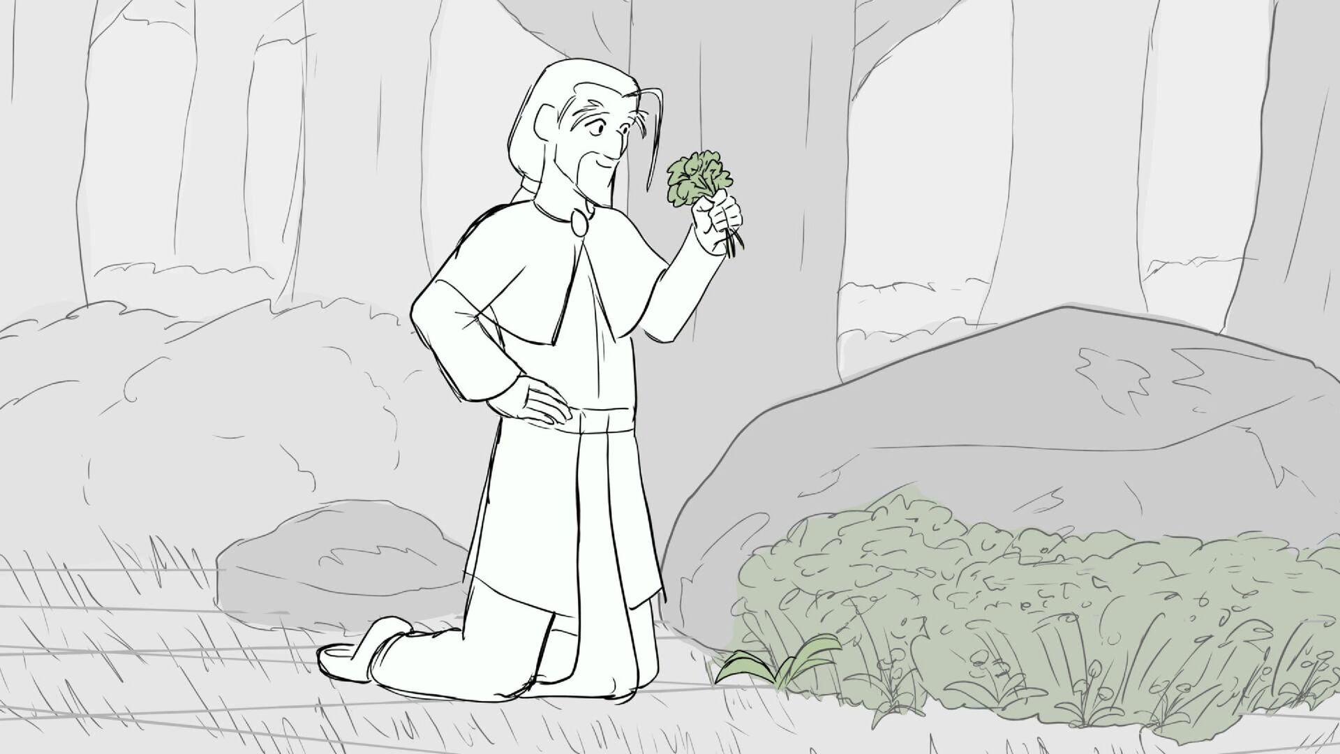 A cursed prince and his tutor are on a journey to undo said curse. Along the way, they ran out of food, so the prince made a bet on how to obtain food. His method of winning the bet hit upon a series of mishaps.