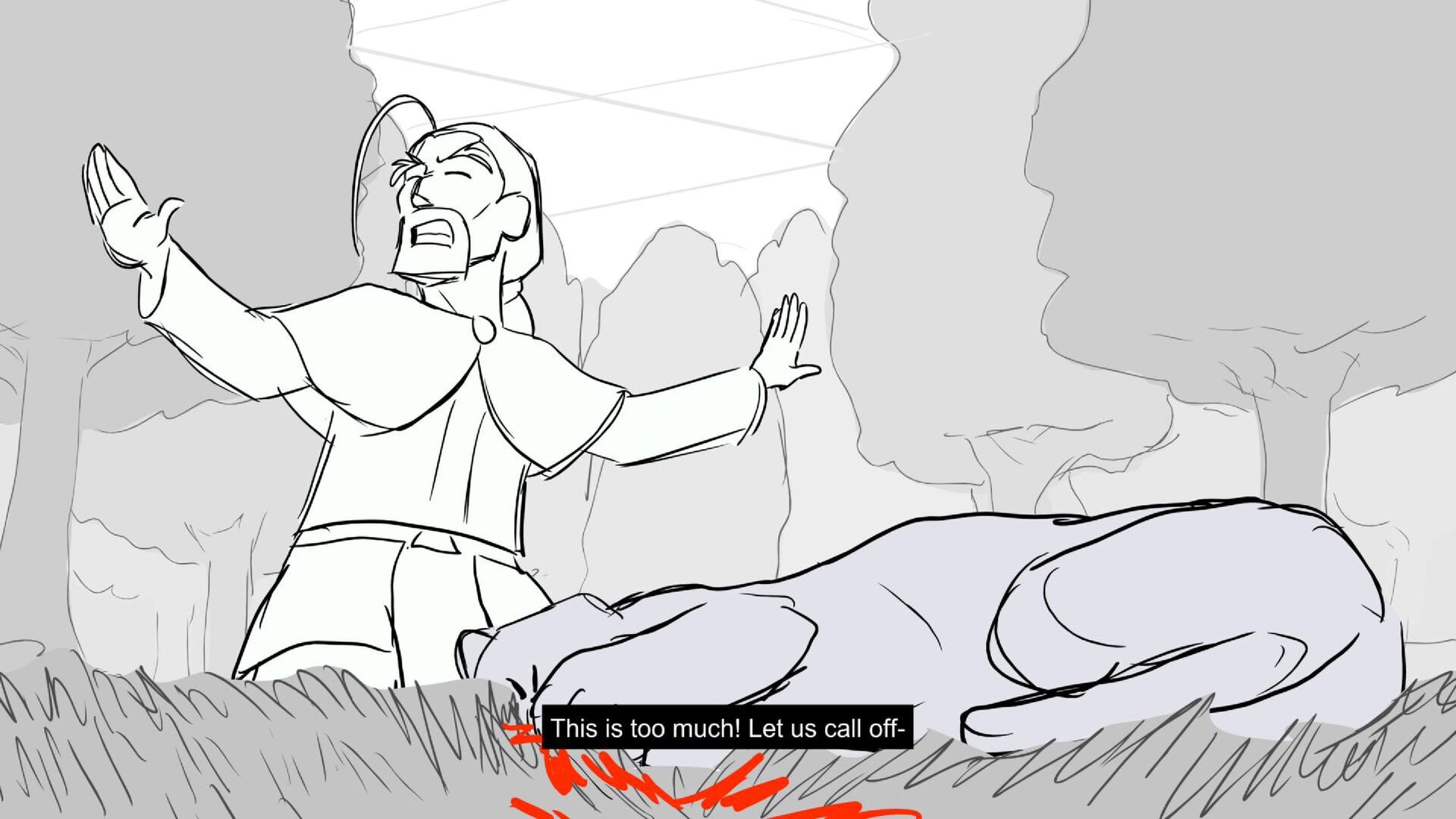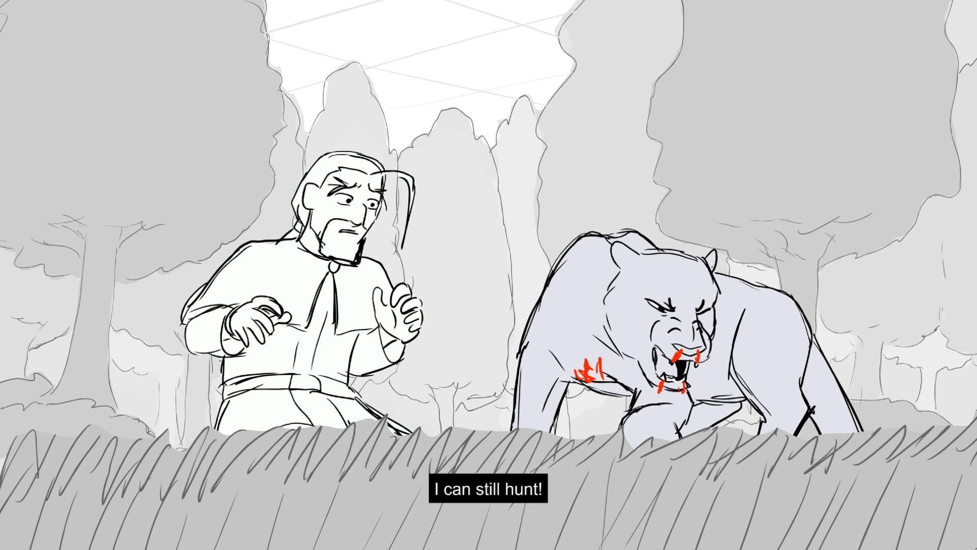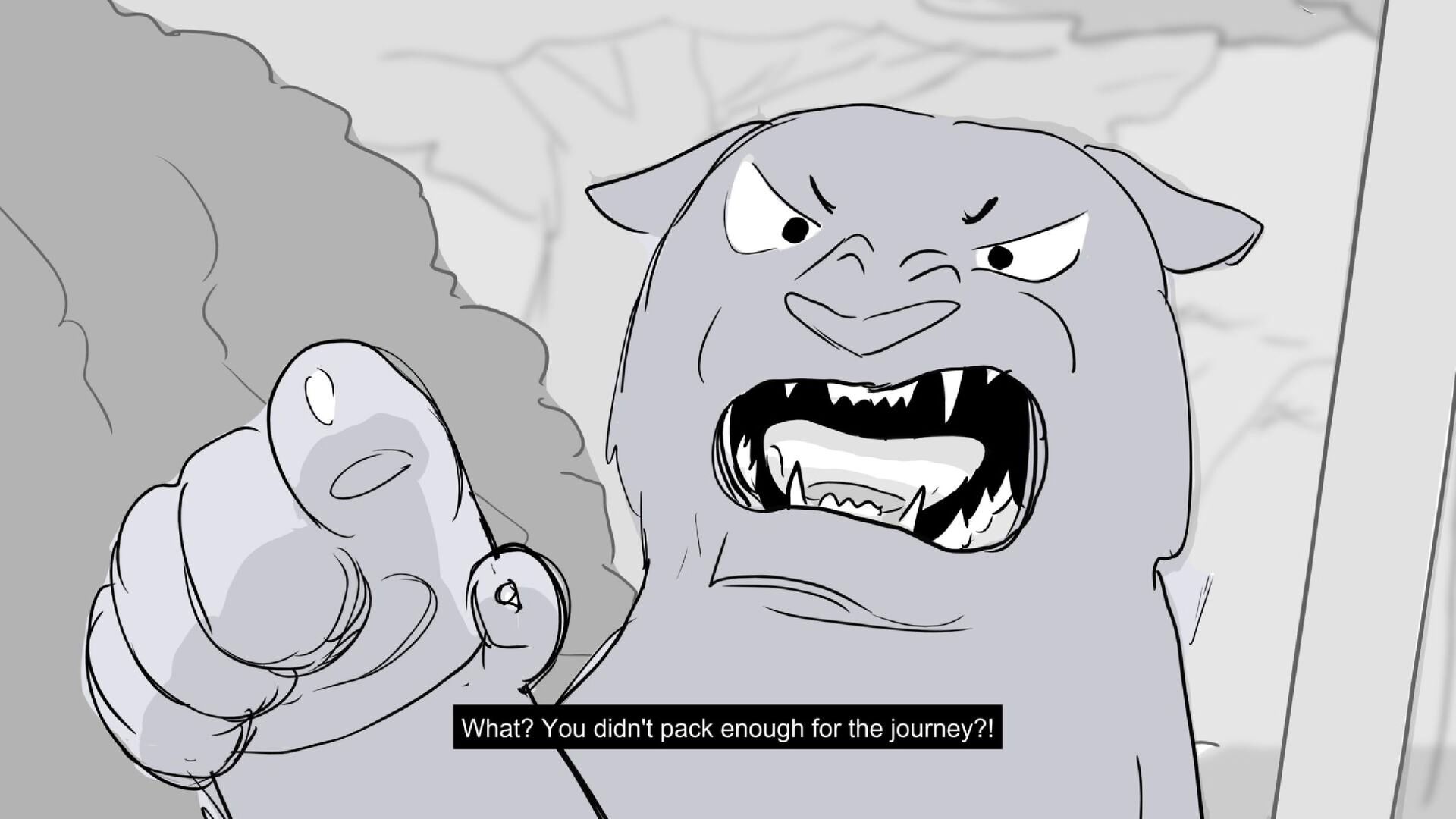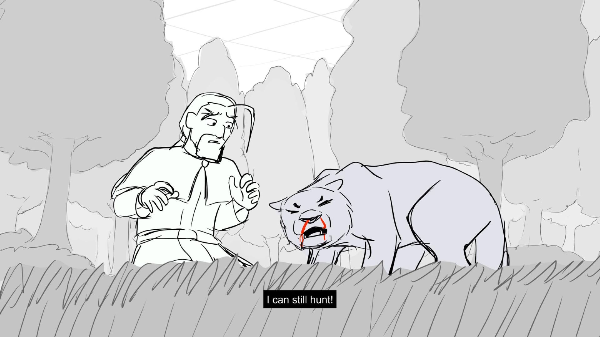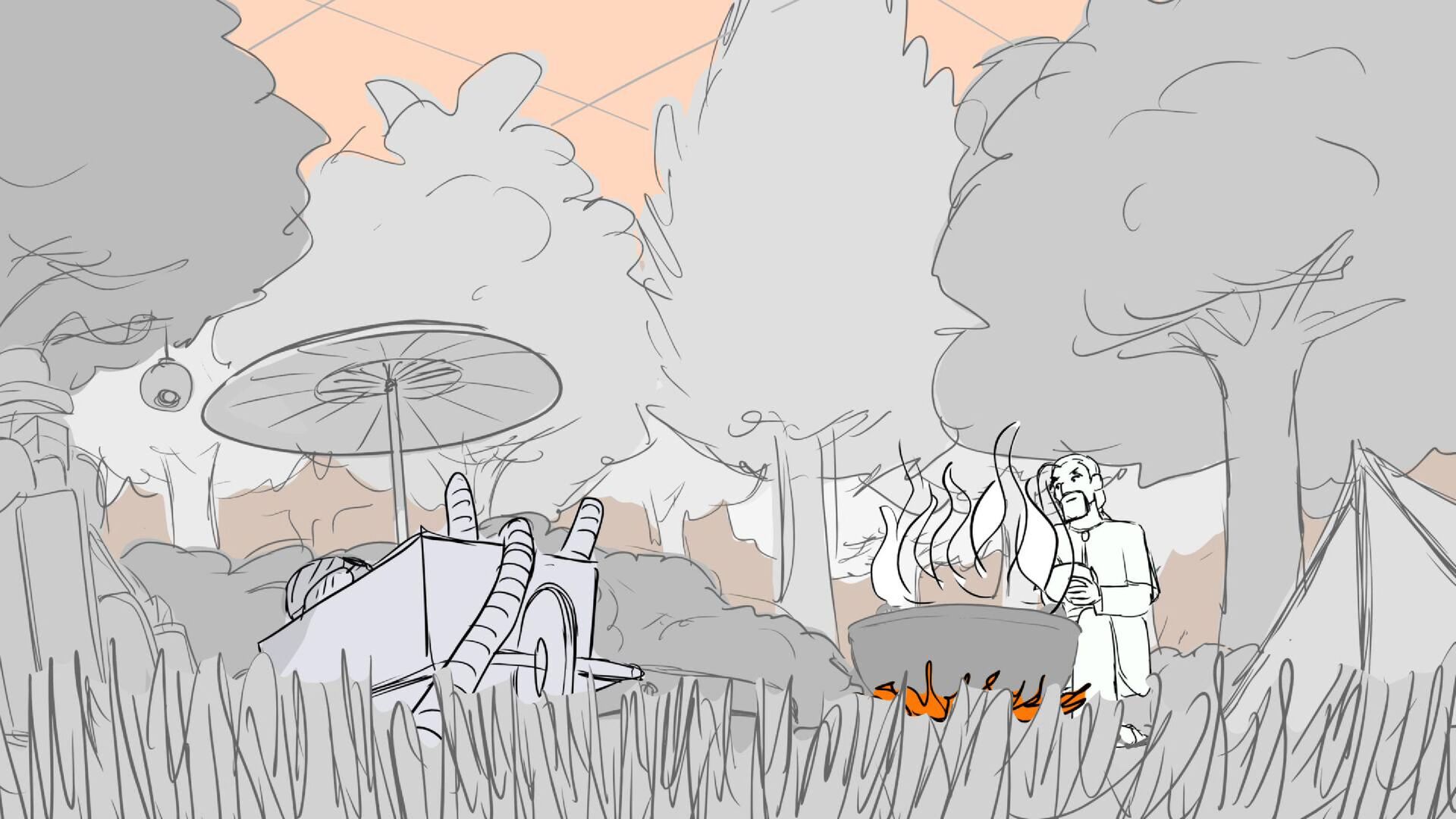 A cursed prince and his tutor are on a journey to undo said curse. Along the way, they ran out of food, so the prince made a bet on how to obtain food. His method of winning the bet hit upon a series of mishaps.