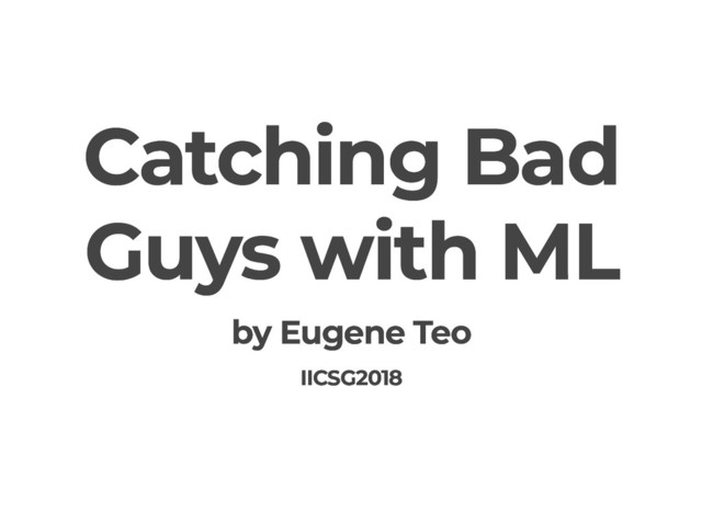 Organisations today are starting to explore using machine learning to discover patterns and anomalies. By doing so, they may derive security insights that may help them uncover malicious activities in their environment. In this talk, Eugene will discuss how we can apply machine learning to catch bad guys, and what we should take note of when building models.