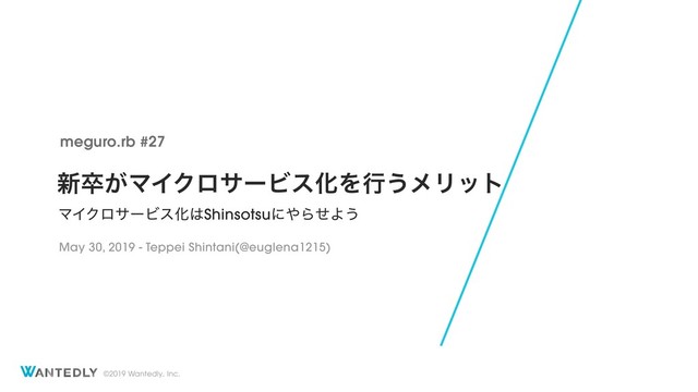 ©2019 Wantedly, Inc. ৽ଔ͕ϚΠΫϩαʔϏεԽΛߦ͏ϝϦοτ ϚΠΫϩαʔϏεԽShinsotsuʹΒͤΑ͏ meguro.rb #27 May 30, 2019