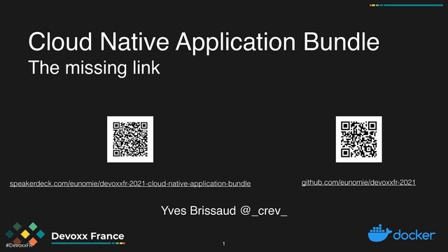 Brissaud @_crev_ 1 github.com/eunomie/devoxxfr-2021 speakerdeck.com/eunomie/devoxxfr-2021-cloud-native-application-bundle
