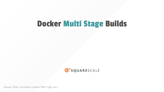--privileged -v $PWD:/root/ \ projectatomic/dockerfile-lint dockerfile_lint lint --------ERRORS--------- Line 1: -> FROM ruby:2-alpine3.6 as sass ERROR: Invalid parameters for command.. Reference -> https://docs.docker.com/engine/reference/builder/ Line 12: -> FROM node:8-alpine as dependencies ERROR: Invalid parameters for command.. Reference -> https://docs.docker.com/engine/reference/builder/ Human Talks Grenoble octobre 2017 | @_crev_