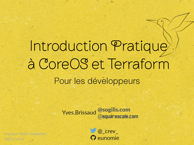 Présentation par la pratique de CoreOS et Terraform, du point de vue développeur. HumanTalks Grenoble du 08/11/2016