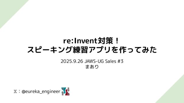 𝕏:@eureka_engineer re:Invent対策! スピーキング練習アプリを作ってみた 2025.9.26 JAWS-UG Sales #3 まあり