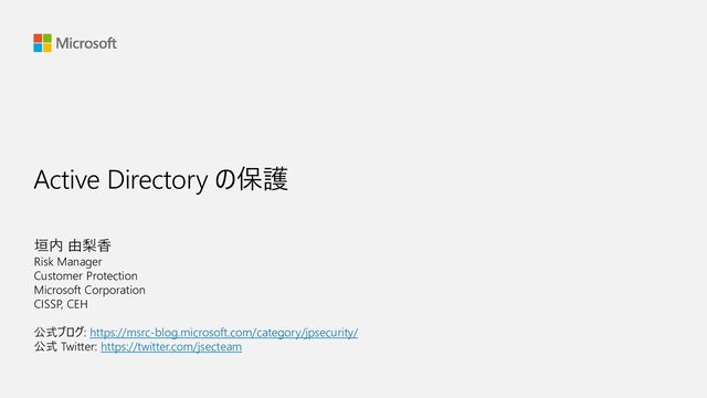 Active Directory の保護 垣内 由梨香 Risk Manager Customer Protection Microsoft