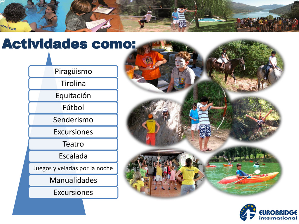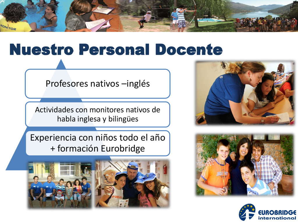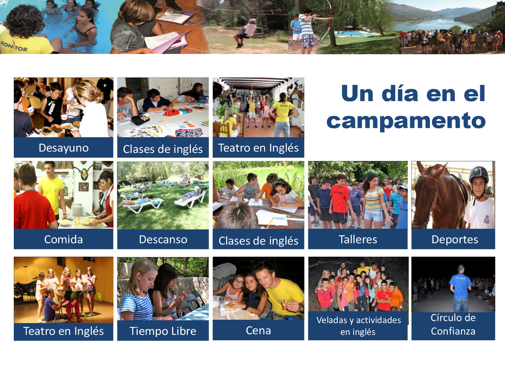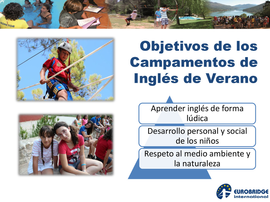 nivel de los participantes Estudio temático de: plantas, animales, ecología, actividades, juegos, prensa, etc. Relacionadas con las actividades: práctica del idioma durante todo el día Dinámicas y divertidas Enfocadas en la expresión oral y comprensión auditiva Clases de Inglés