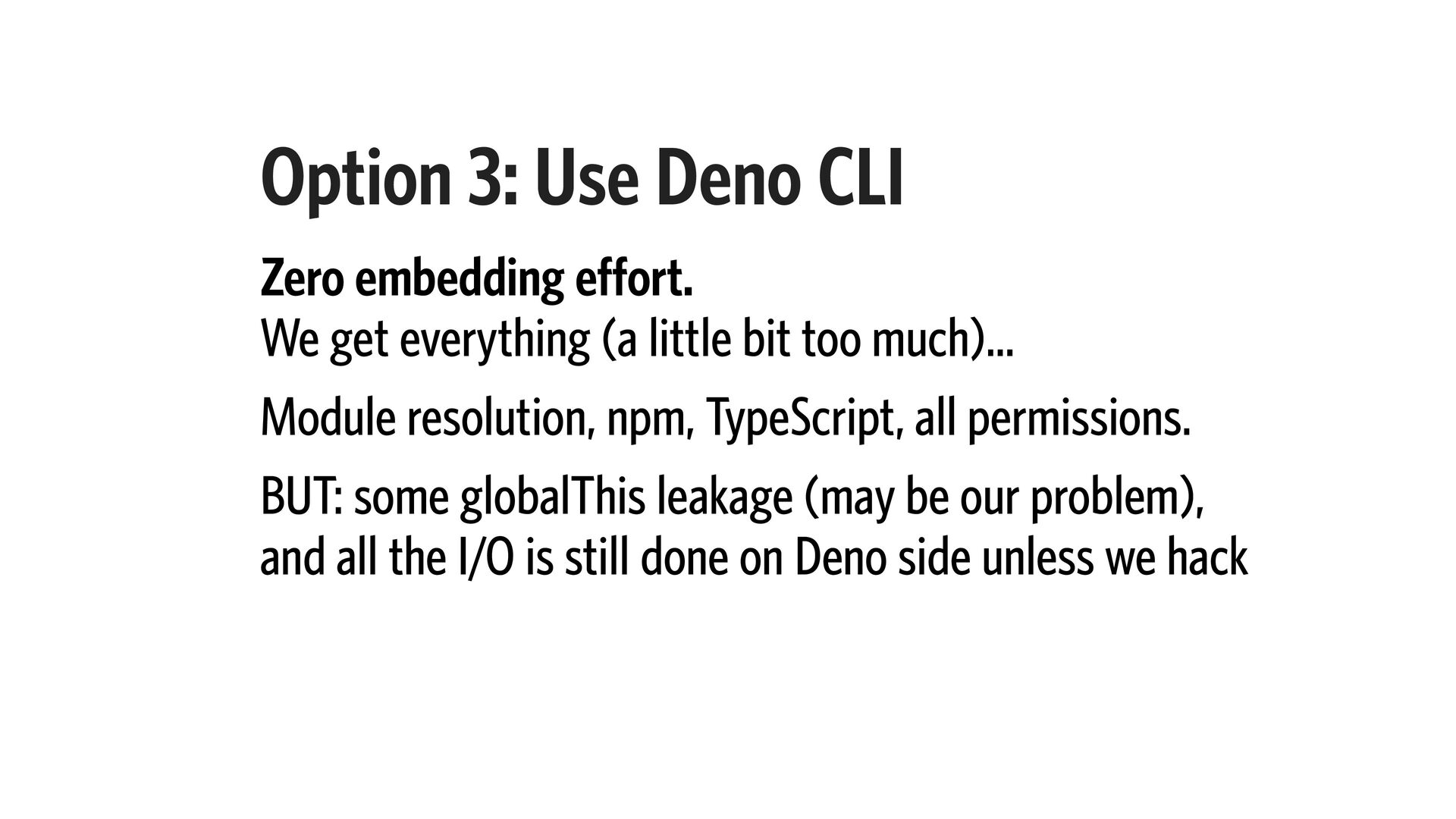 11. Option 3: Use Deno CLI Zero embedding effort. We get