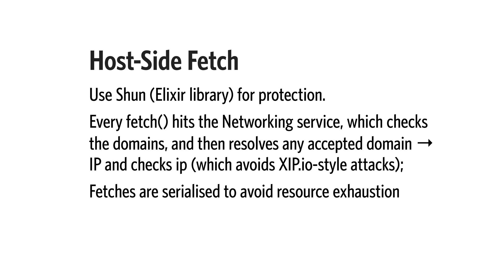 19. Host-Side Fetch Use Shun (Elixir library) for protection. Every fetch()