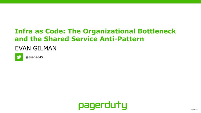 As your company's Engineering team grows, and the rate of infrastructure evolution increases, it becomes increasingly apparent that it is not only your Ops team that needs to manipulate the infrastructure codebase - it's everyone! So tools are built, skills are taught, and before you know it, the infrastructure codebase is the most contentious in the whole organization. This talk chronicles PagerDuty's journey from Ops-driven evolution to distributed evolution, the pains involved and the hard lessons learned.