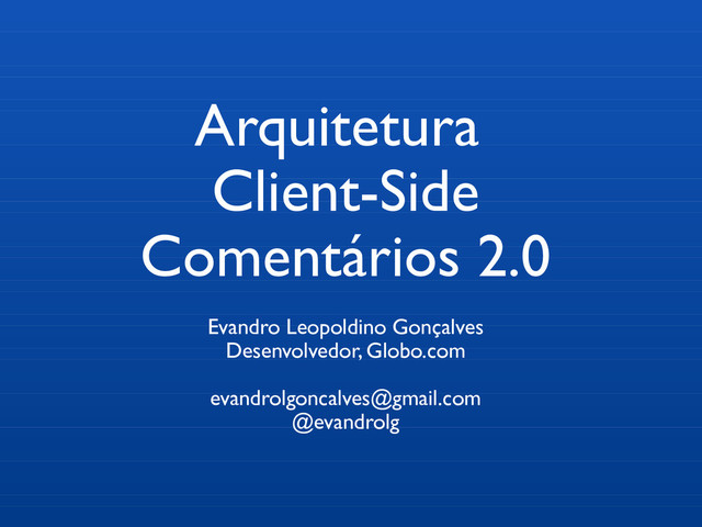 Arquitetura Client-Side Comentários 2.0 Evandro Leopoldino Gonçalves Desenvolvedor, Globo.com