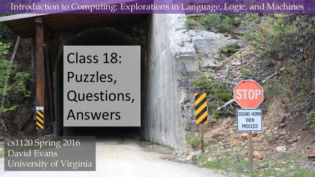 cs1120: Introduction to Computing Explorations in Language, Logic, and Machine University of Virginia, Spring 2016