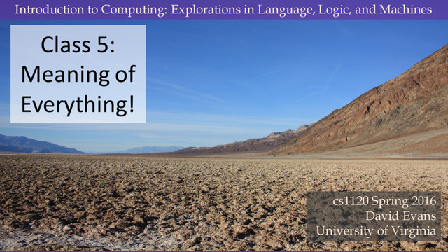 cs1120: Introduction to Computing Explorations in Language, Logic, and Machine University of Virginia, Spring 2016
