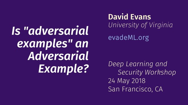 David Evans (https://www.cs.virginia.edu/evans/) is a Professor of