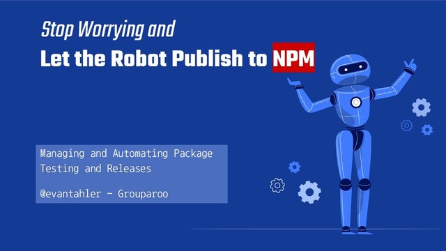 a new ‘release’ tag: npm version patch Grant CI Access to NPM: echo "//registry.npmjs.org/:_authToken=$NPM_TOKEN" >> ~/.npmrc Push to NPM: npm publish --tag latest (or skip the --tag) Push the new version back to Git: git checkout master && git rebase stable && git push && git push --tags human discretion here Or maybe semantic-release
