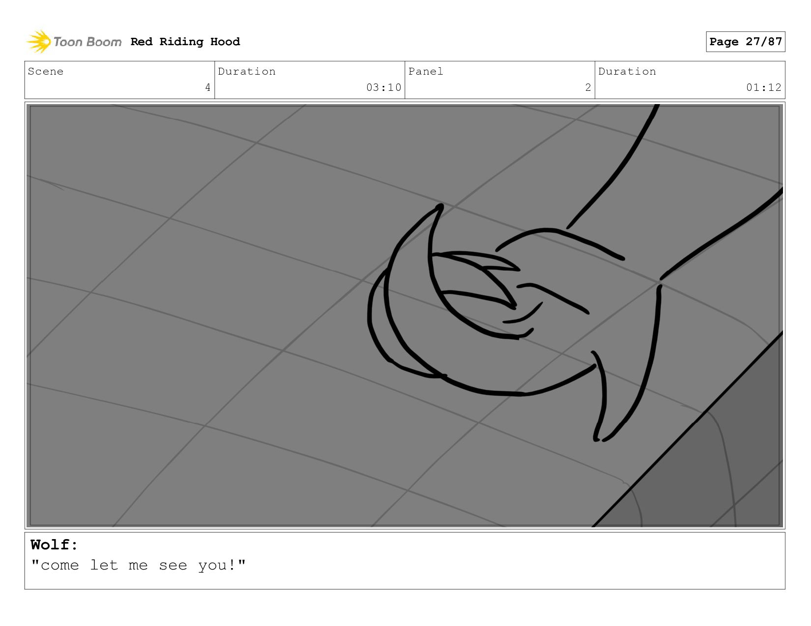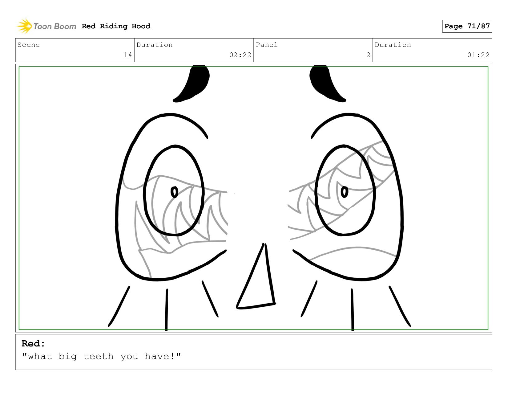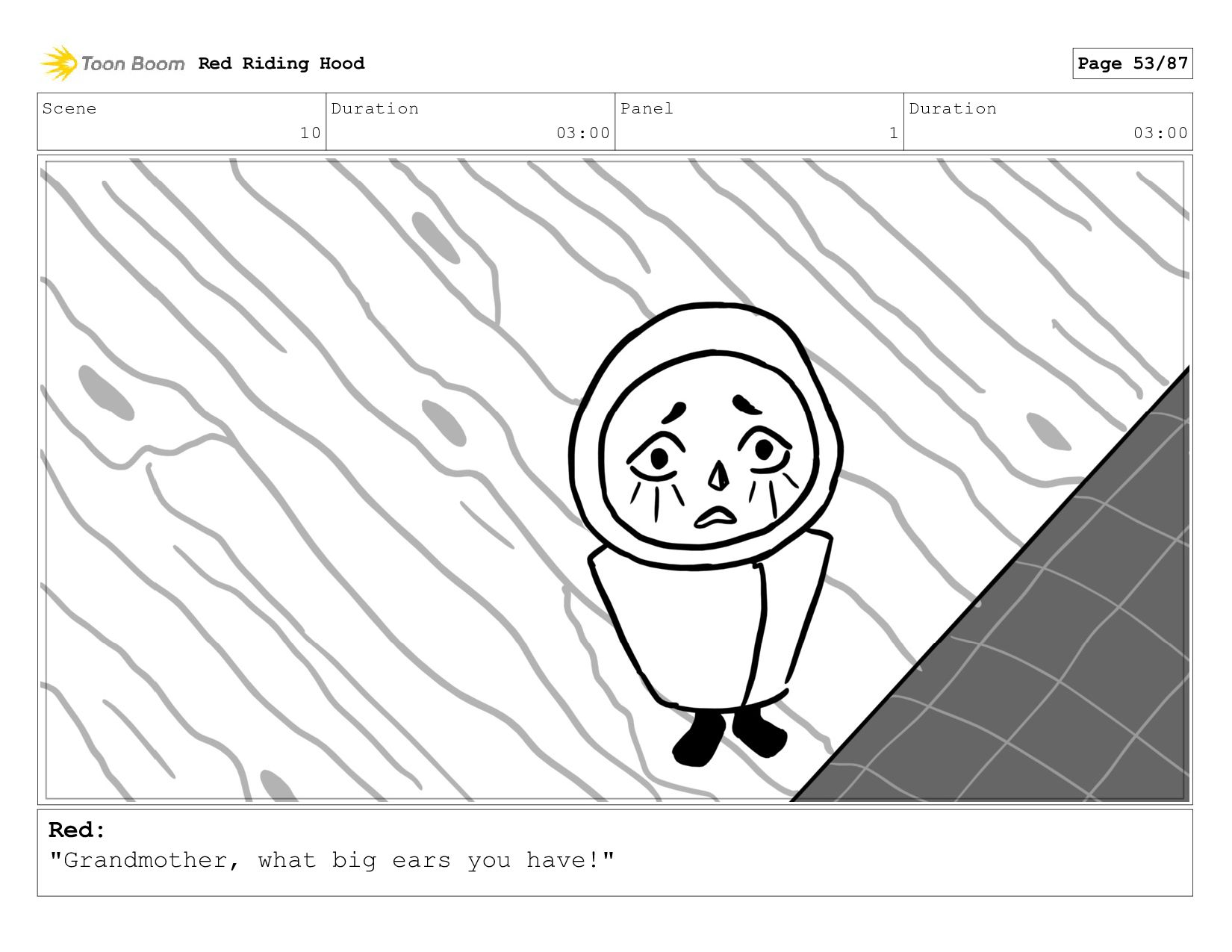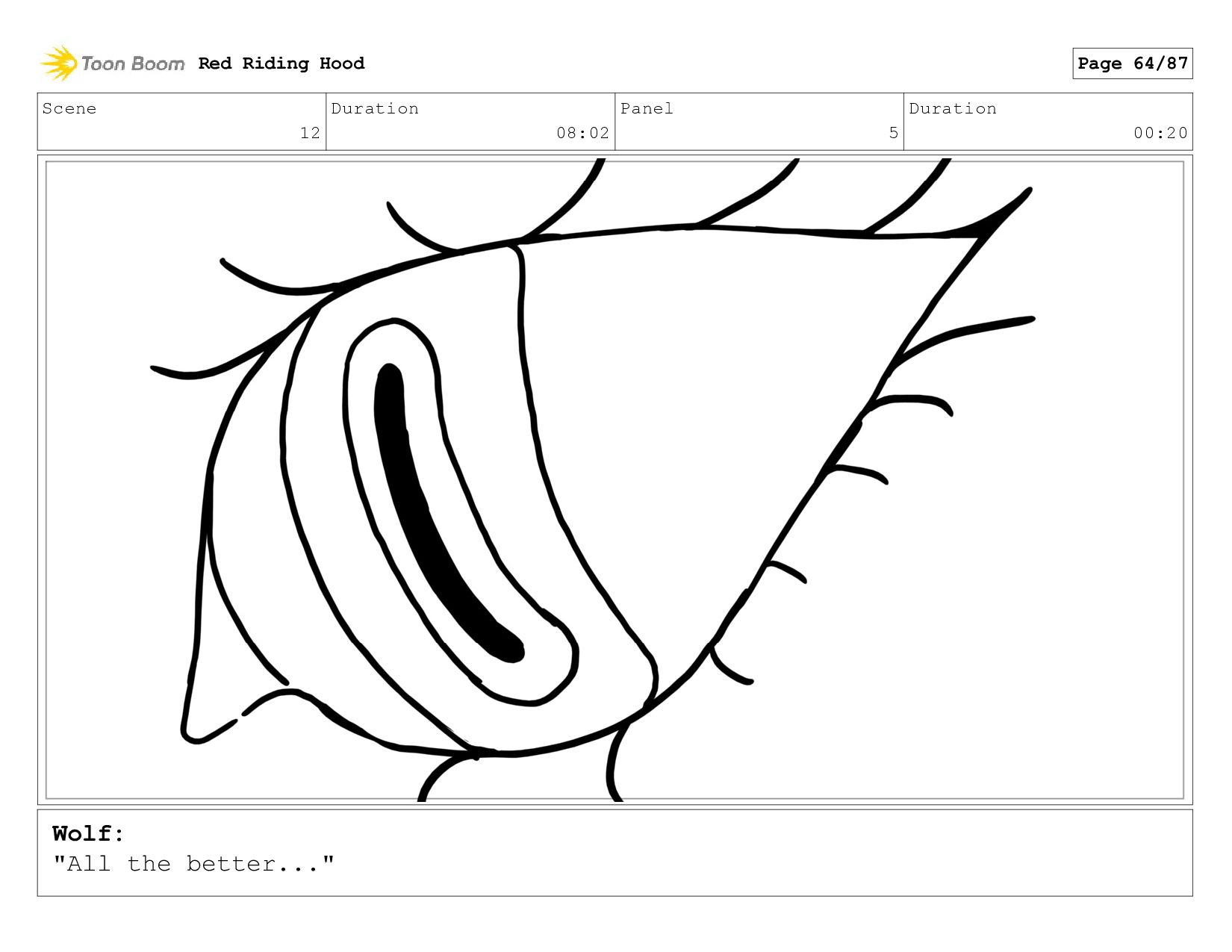 Little Red Riding Hood storyboard done as an assignment for a sophomore Storyboarding class in spring/summer of 2021.