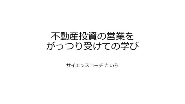 不動産投資の営業を がっつり受けての学び サイエンスコーチ たいら