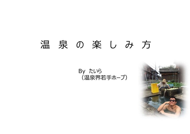 温 泉 の 楽 し み 方 By たいら (温泉界若手ホープ)