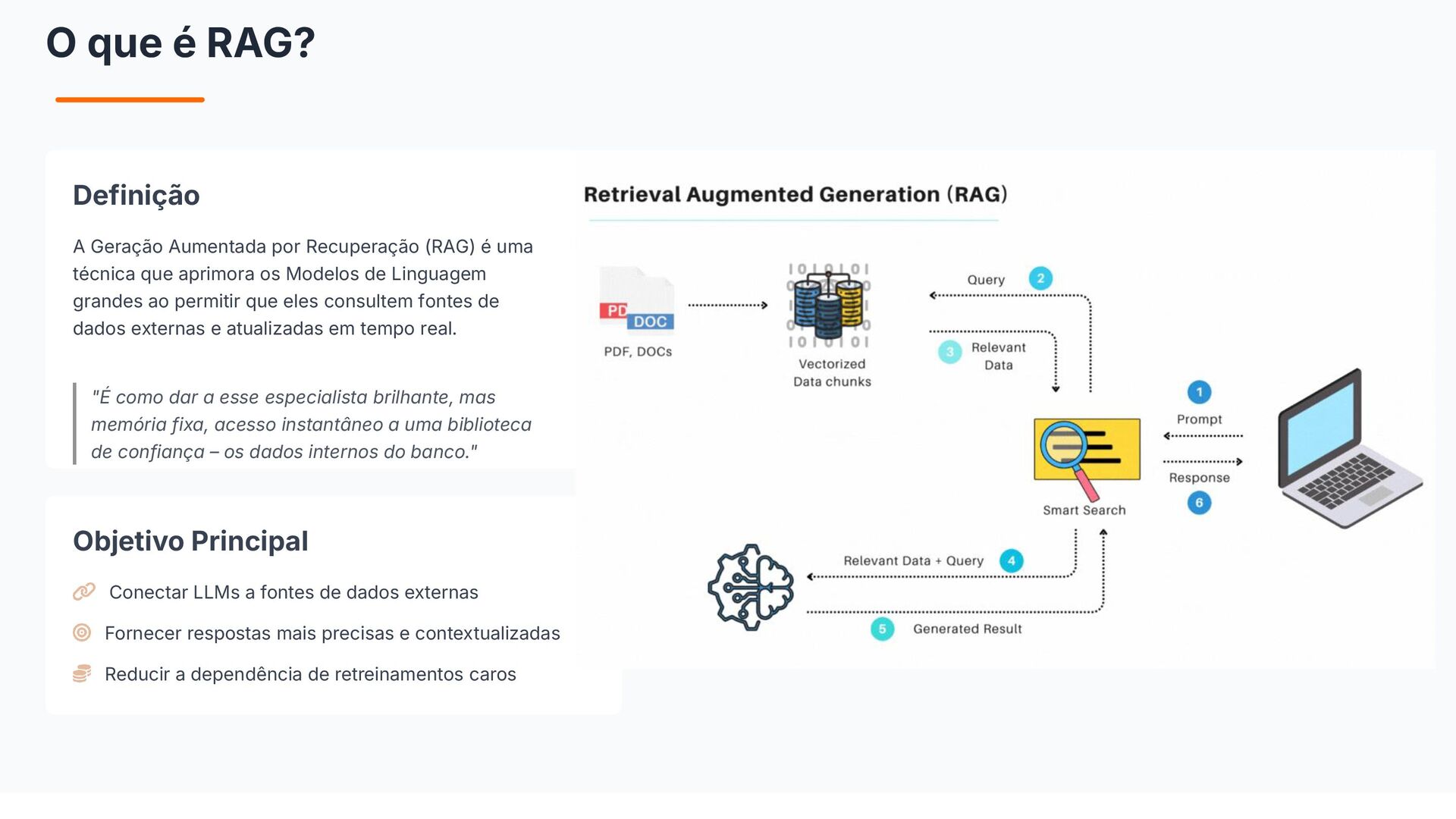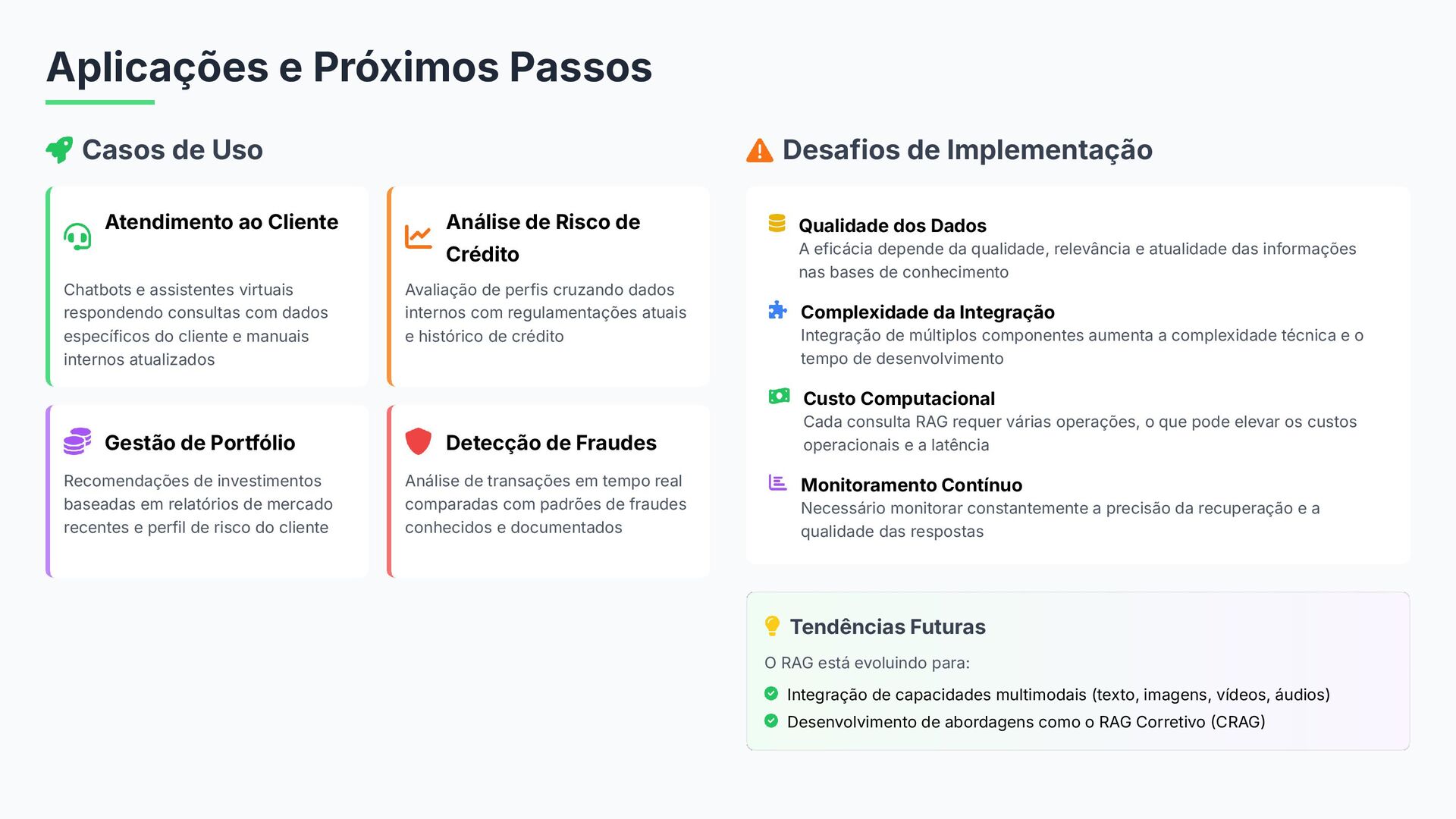 Do conceito à entrega: um guia para construir soluções com GenAI em bancos. Fundamentos essenciais (LLMs, RAG, embeddings e prompts), padrões para minimizar alucinações com prompt-eval loop, e um tour pelas features da StackSpot AI — Knowledge Sources, Quick Commands e agentes — para acelerar times e criar experiências inteligentes com governança.