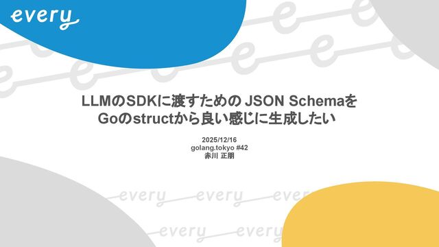 LLMのSDKに渡すための JSON Schemaを Goのstructから良い感じに生成したい 2025/12/16 golang.tokyo #42 赤川 正朋