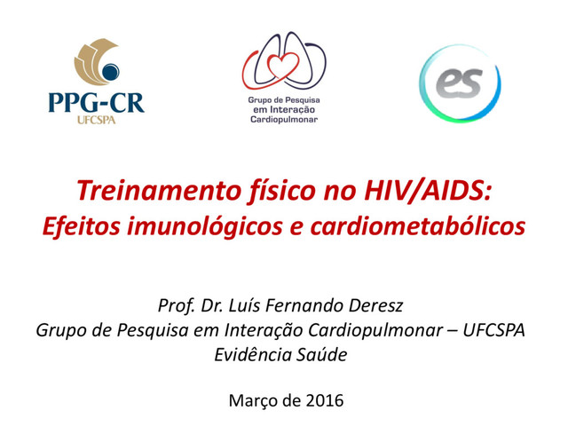 anos Com e sem TARV Imunológicos Cardiorrespiratórios Psicológicos Efeitos adversos 14 estudos 1980 - 2009 3 x sem/ mínimo 4 sem O’brien K. e Cols. The Cochrane Library 2010, Issue 8 CD4 – Treinamento contínuo/intervalado vs. controle
