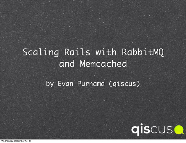 to connect and scale. Applications can connect to each other, as components of a larger application, or to user devices and data. Messaging is asynchronous, decoupling applications by separating sending and receiving data. You may be thinking of data delivery, non-blocking operations or push notifications. Or you want to use publish / subscribe, asynchronous processing, or work queues. All these are patterns, and they form part of messaging. RabbitMQ is a messaging broker - an intermediary for messaging. It gives your applications a common platform to send and receive messages, and your messages a safe place to live until received. Wednesday, December 17, 14