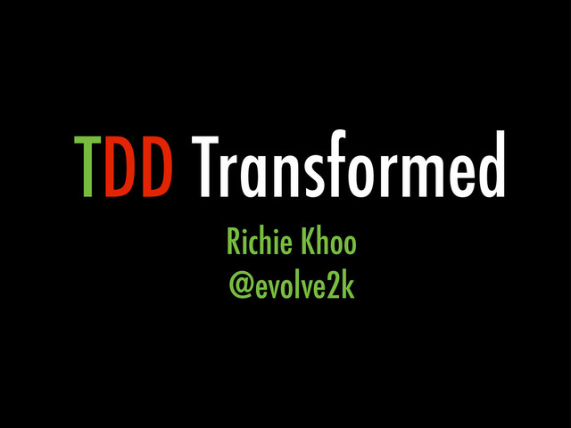 Corey Haines Roman Numerals Kata http://programmingtour.blogspot.com.au/2012/12/roman-numerals-kata- with-commentary.html Extending Red, Green, Refactor with Expected http://richiekhoo.com/post/49820134249/extending-red-green-refactor-with- expected