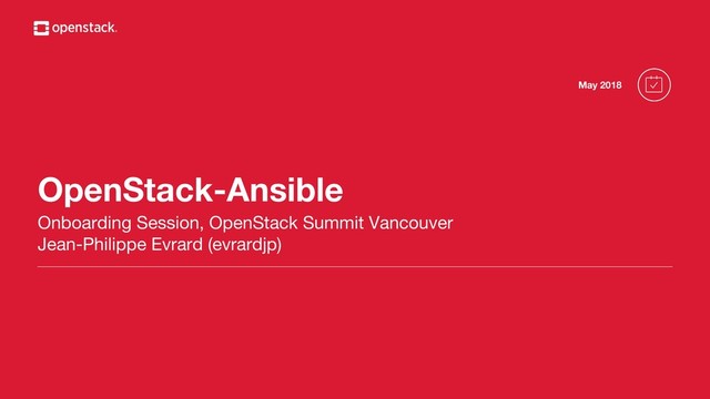 OpenStack-Ansible Onboarding Session, OpenStack Summit Vancouver Jean-Philippe Evrard (evrardjp) May
