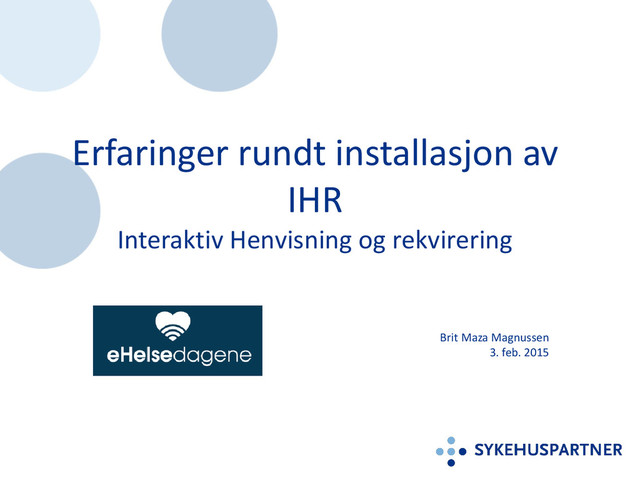 Sør-Øst. • System for elektronisk rekvirering og henvisning fra primærleger til helseforetak. • Komplekst prosjekt med mange involverte. • Helse Midt-Norge IT – HEMIT. Avtale i 2014 starter pilot i vår 2015