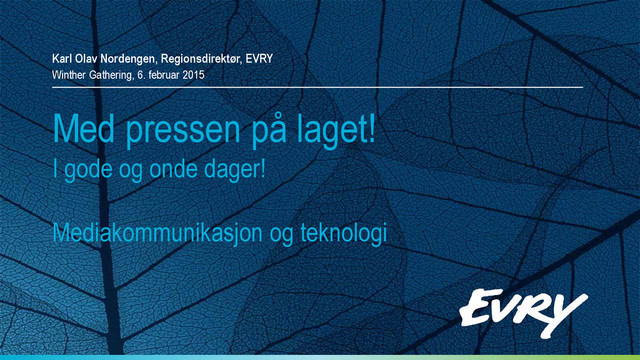 am going to spend the rest of my life there (C. Kettering) Tidene endrer seg så også kanalene for å kommunisere. Har de tradisjonelle mediene noen fremdtid? JA,men… !