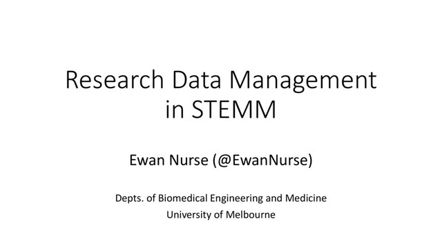 Research Data Management in STEMM Ewan Nurse (@EwanNurse) Depts. of