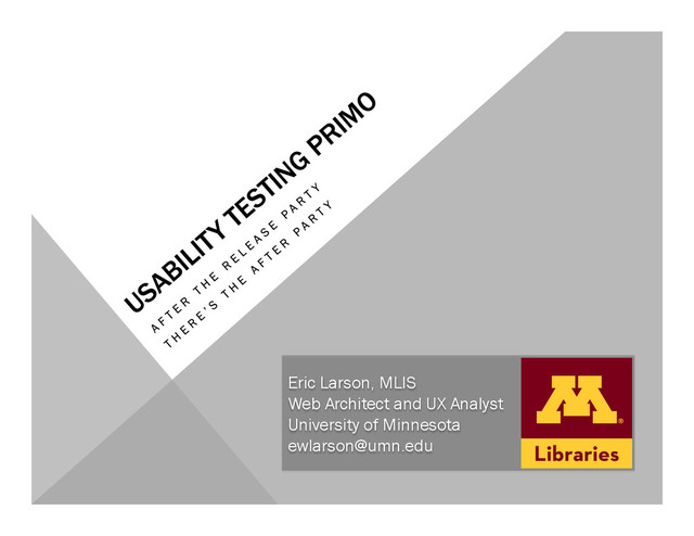 Observations and results of the U of M Libraries' Primo discovery tool's trip to our campus' formal usability testing lab. Presented at the Amigos Library Services, Discovery Tools Now and in the Future Conference. Nov. 18, 2014.