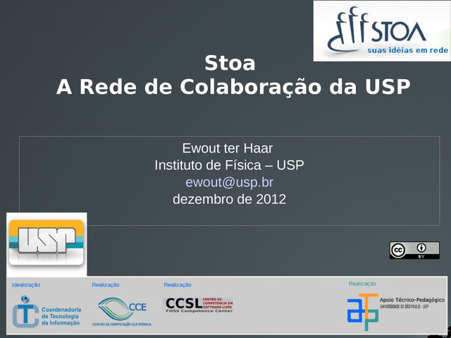 forma menos formal e mais "horizontal" do que os ambientes em apoio a disciplinas tradicionais, mudando o foco de atenção e controle do professor para o aprendiz. Com a implementação da nova plataforma de colaboração, a Rede Social do Stoa, queremos incentivar os professores e estudantes experimentar com estas novas formas de organização de ambientes on-line e investigar como elas podem apoiar as suas atividades institucionais, complementado o que já é oferecido pelo Moodle. Vídeo do relançamento http://ur1.ca/big0x