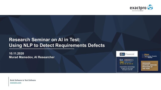 Мурад Мамедов представит научную работу под названием «Использование NLP-методик для обнаружения дефектов требований: промышленный опыт в железнодорожной отрасли» (Using NLP to Detect Requirements Defects: an Industrial Experience in the Railway Domain).