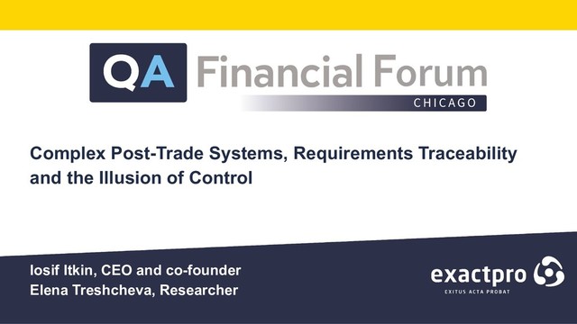 Iosif Itkin , CEO and co-founder, Exactpro
