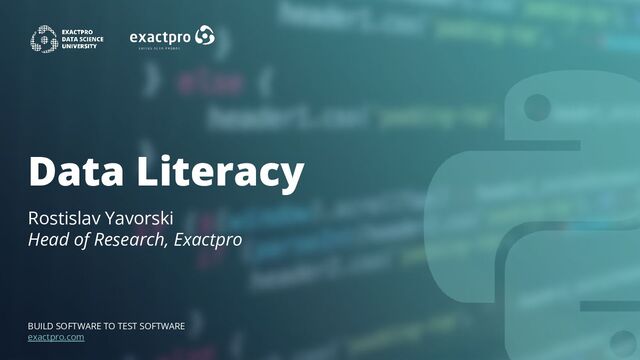 On 7 June, Rostislav Yavorski, Head of Research, Exactpro, held the lecture on Data Literacy.